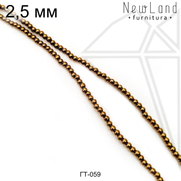 Гематит круглой гладкой формы 2,5 мм золотого цвета.