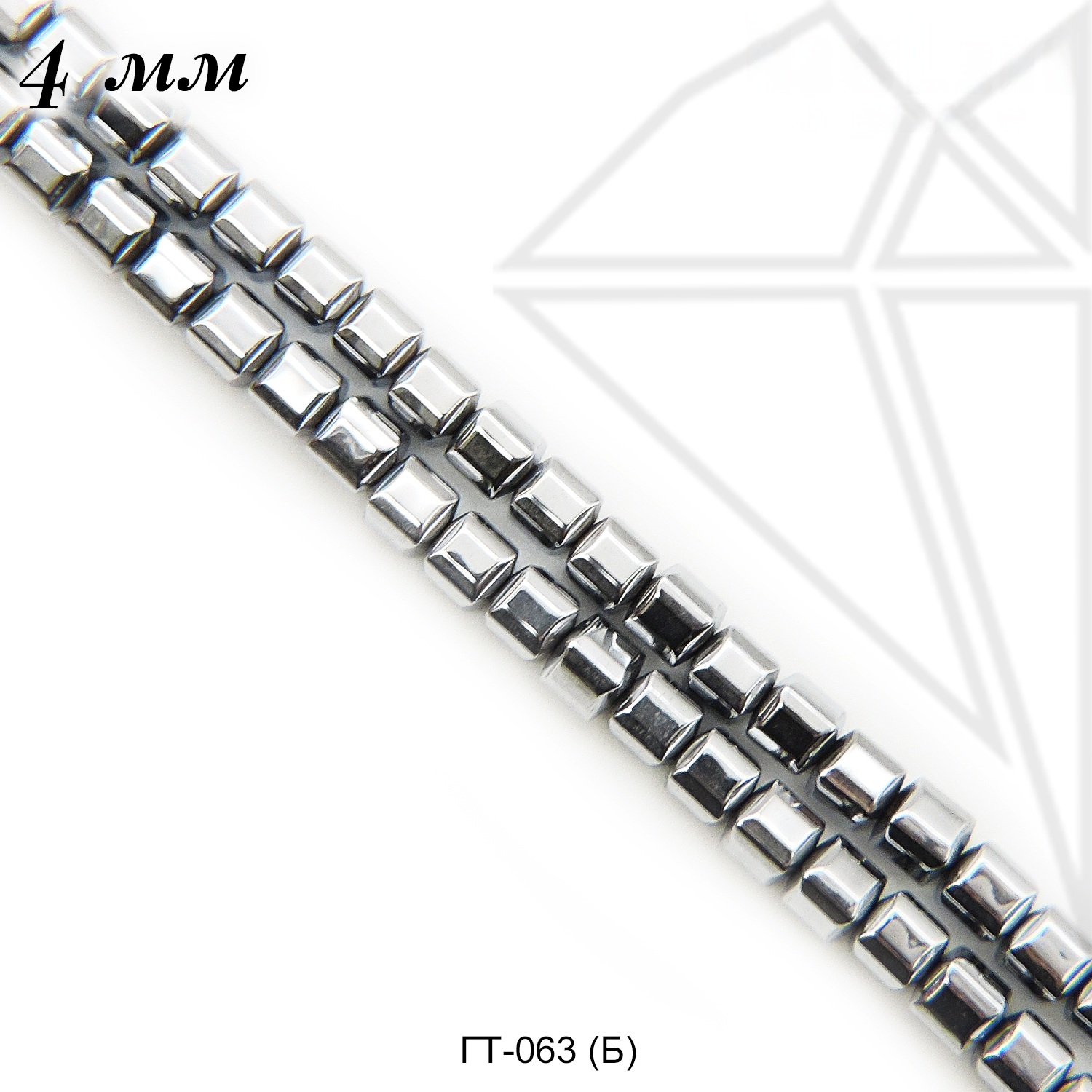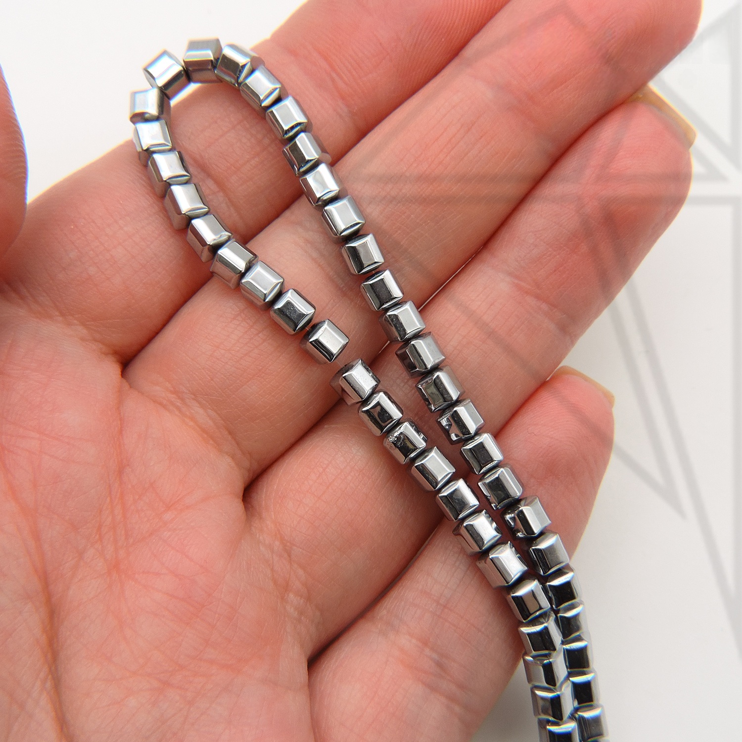 Гематит в форме куба серебристого цвета 4 мм.