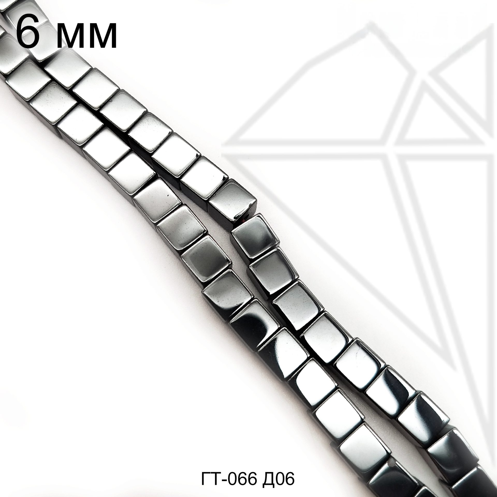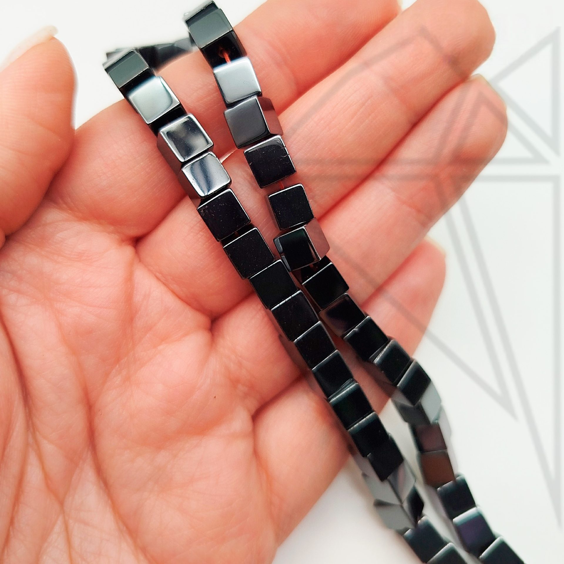 Гематит куб гладкий 6 мм черного цвета.