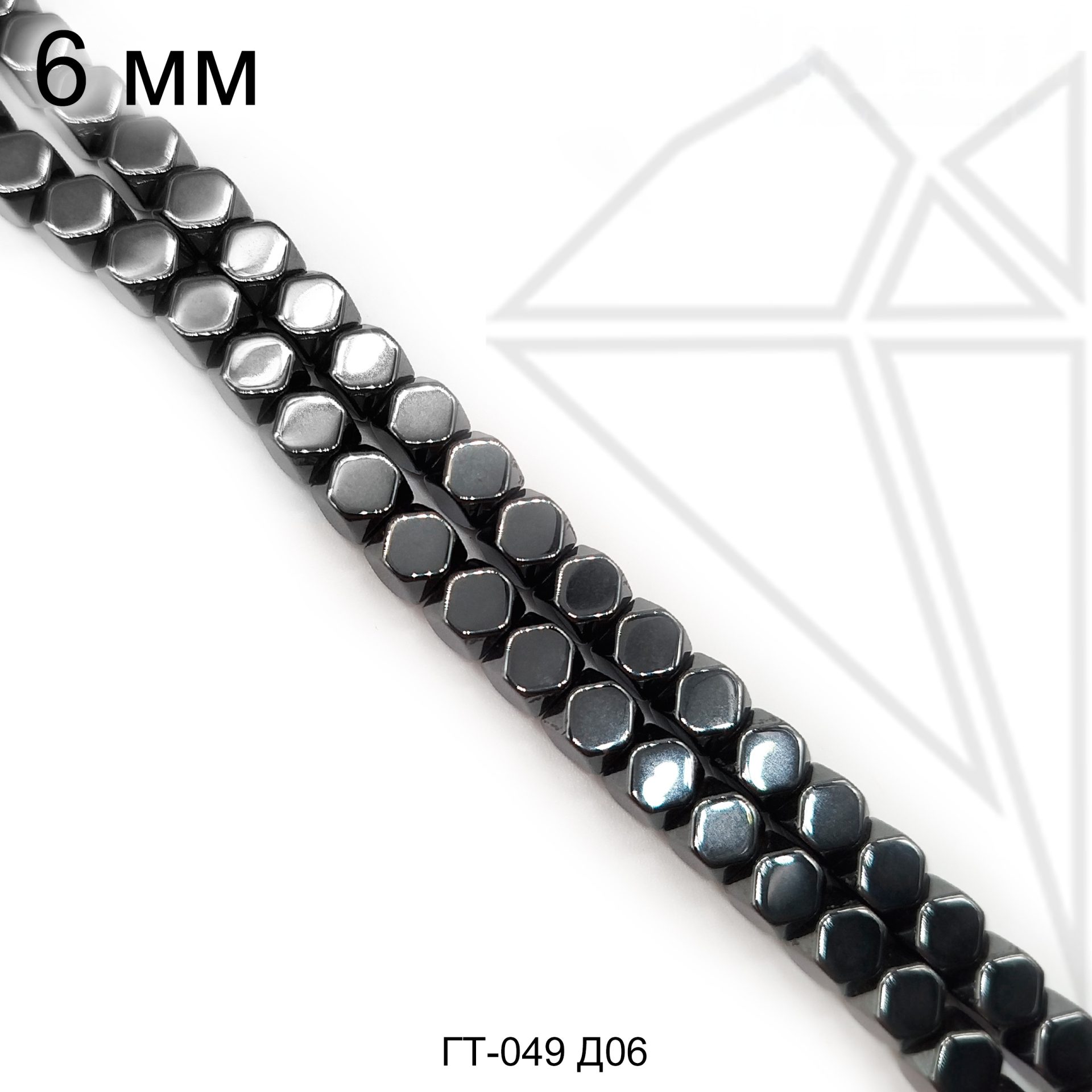 Будьте первым, кто оставил отзыв на «Гематит кубик граненый черный 6 мм 1/2 нити»