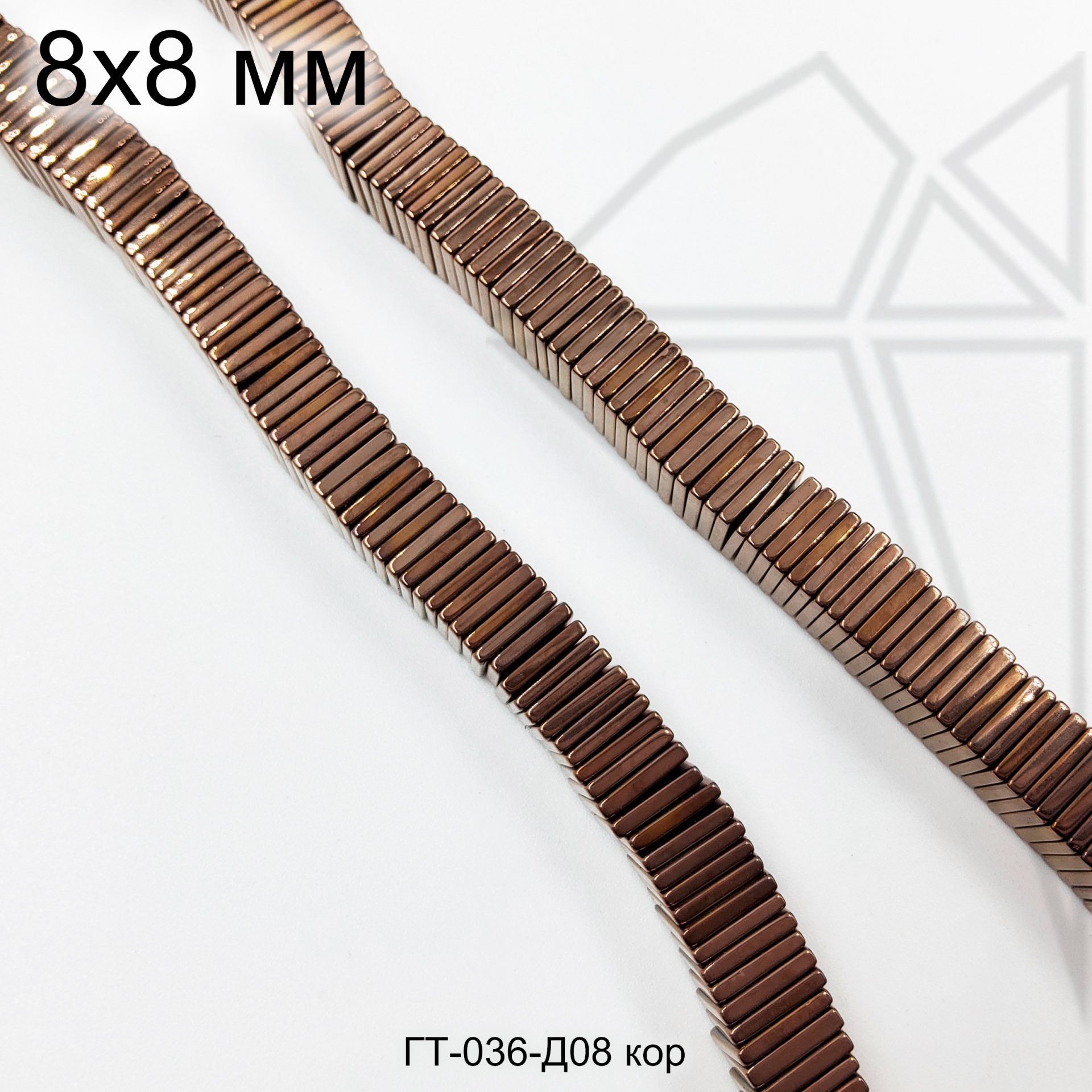 Гематит квадратной формы 8 мм коричневого цвета.