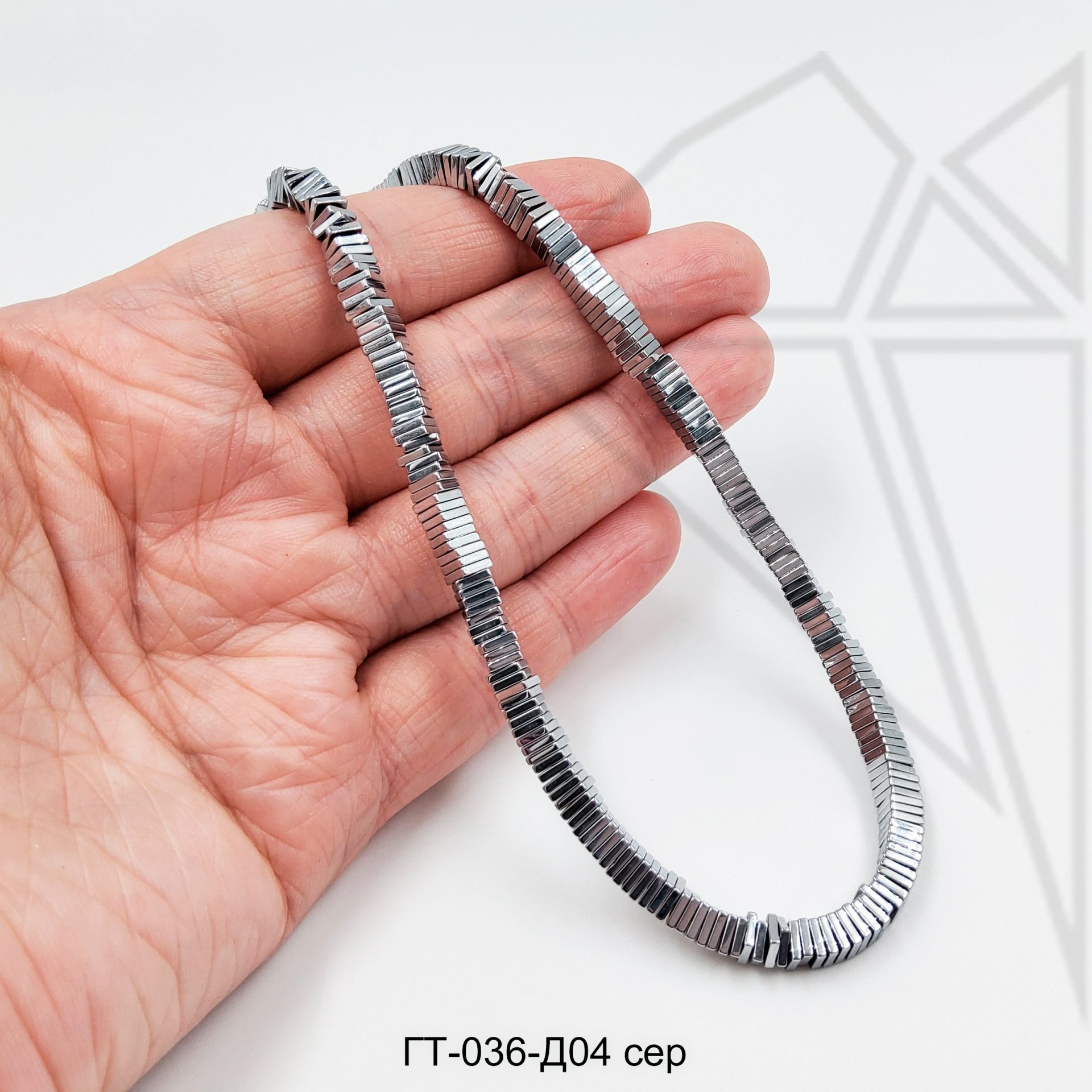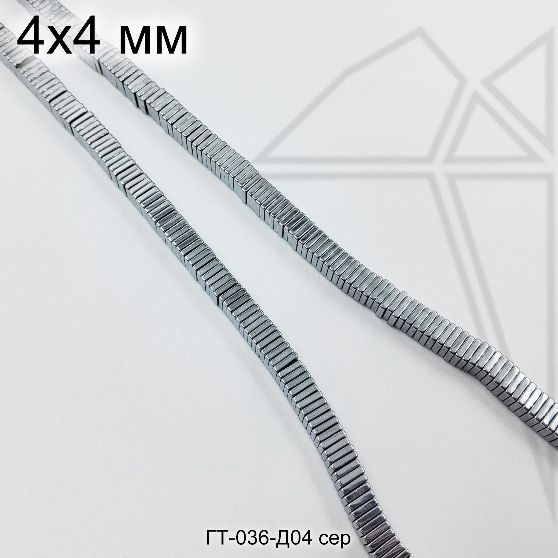 Гематит квадратной формы 4 мм серебристого цвета.