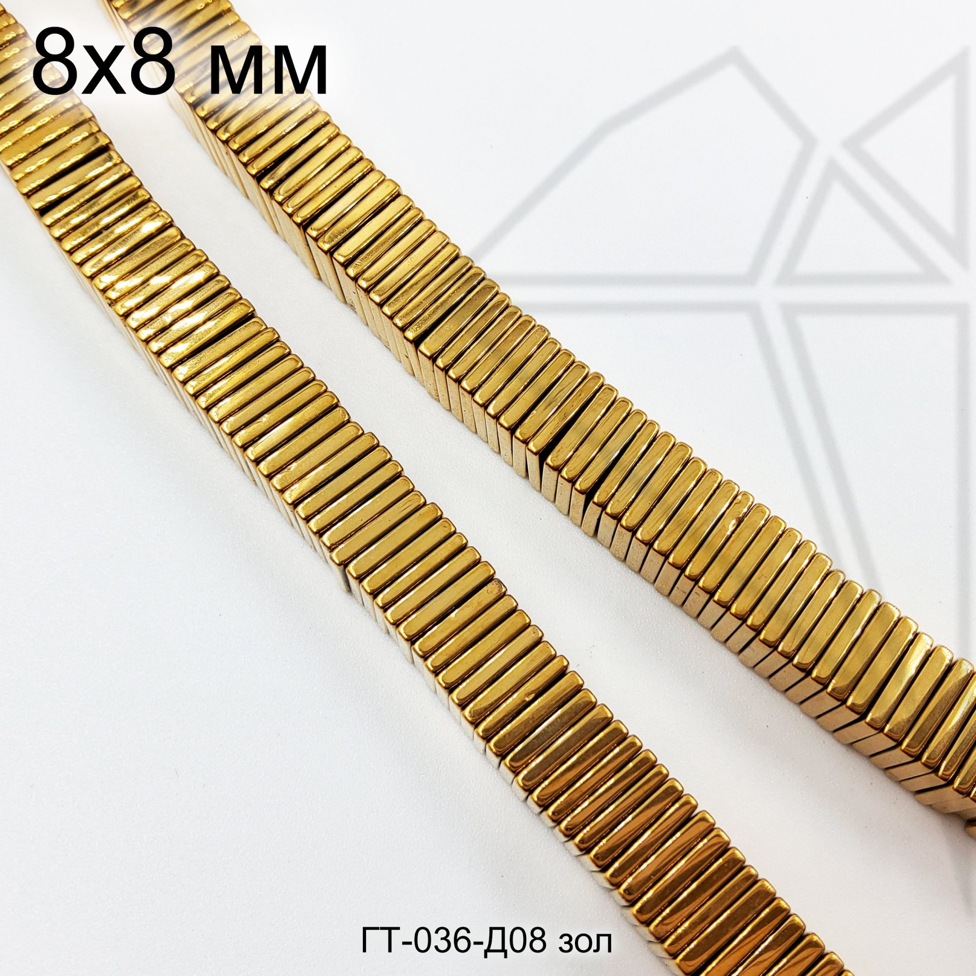 Гематит квадратной формы 8 мм золотого цвета.
