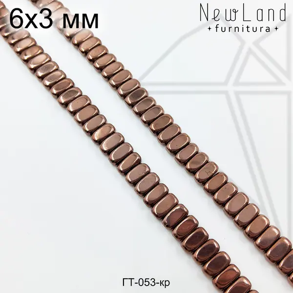 Гематит прямоугольной формы 2х4 мм со сглаженными краями коричневого цвета. Отверстие просверлено поперек бусин.