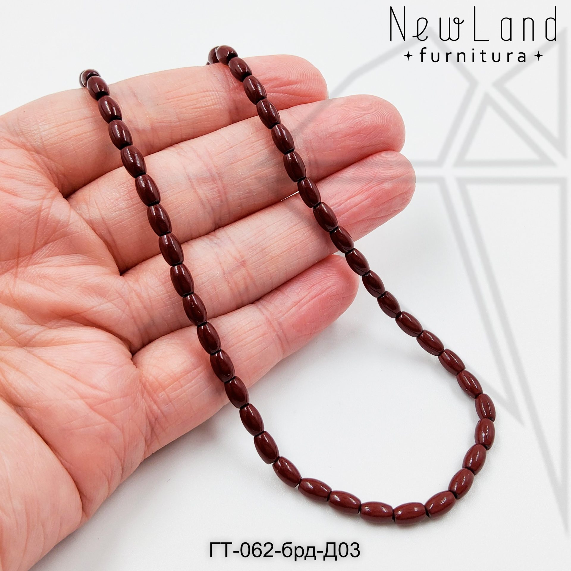Гематит в форме оливы (риса) 5х3 мм бордового цвета.