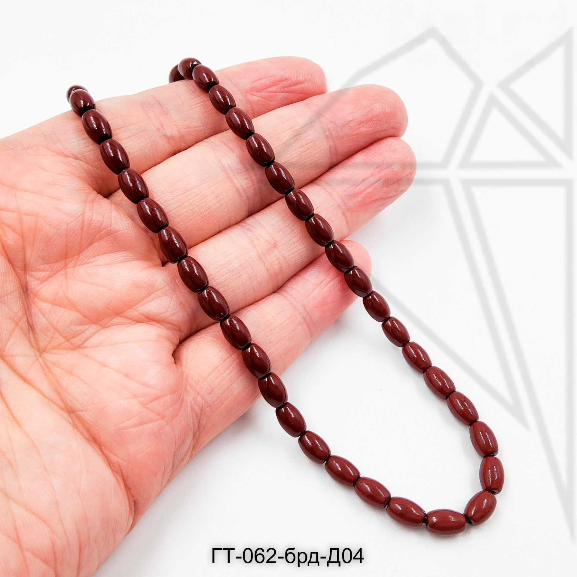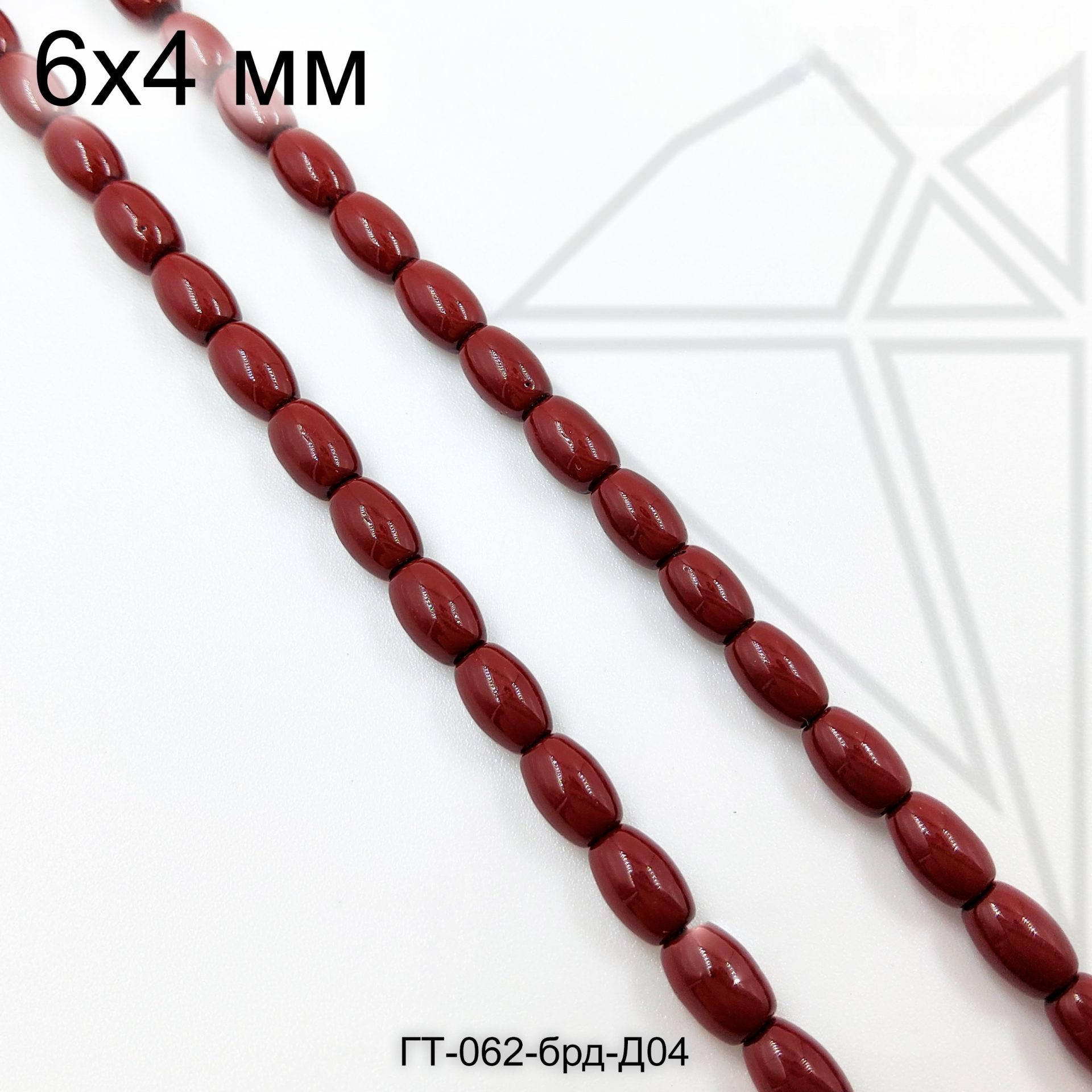 Гематит в форме оливы (риса) 6х4 мм бордового цвета.