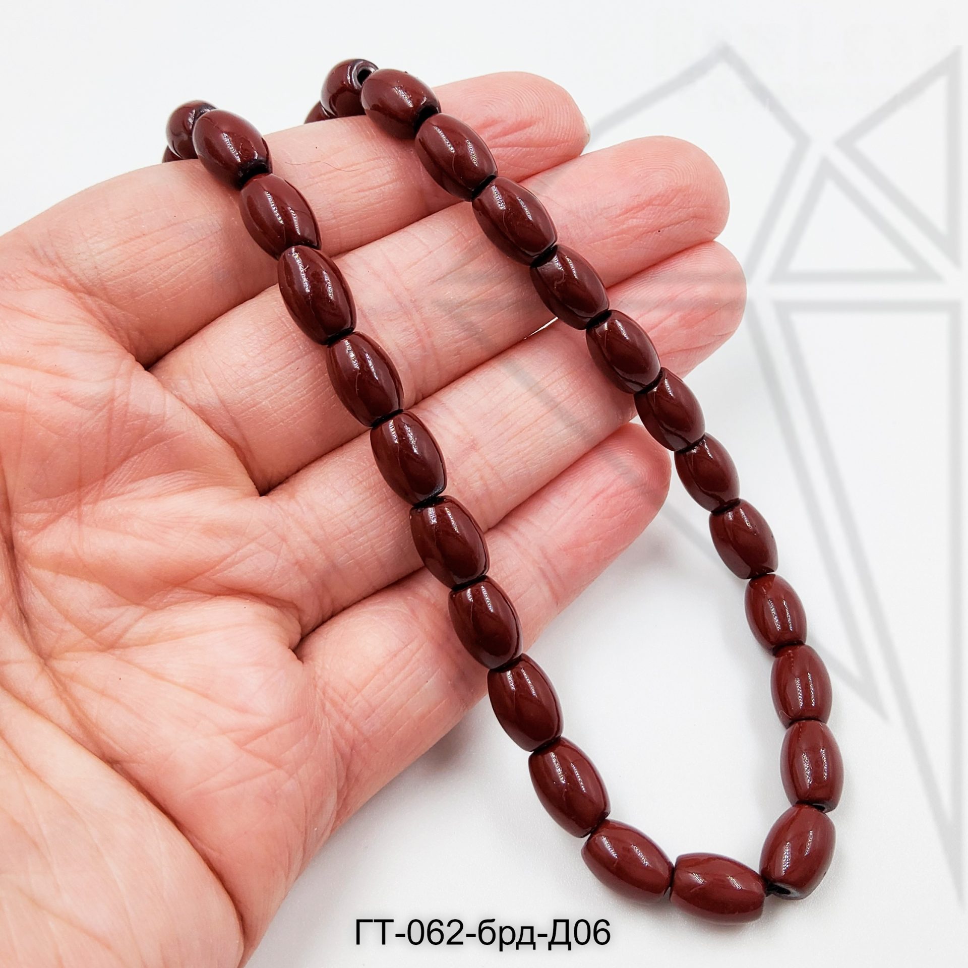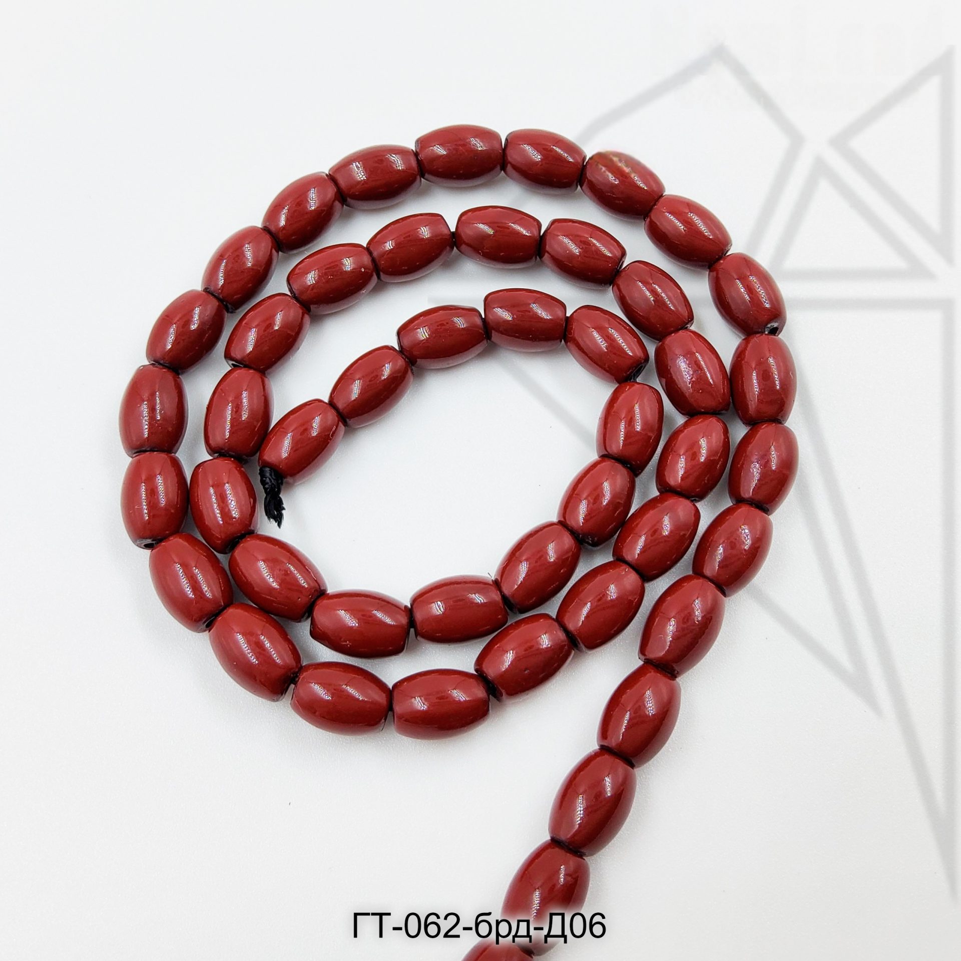 Гематит в форме оливы (риса) 8х6 мм бордового цвета.