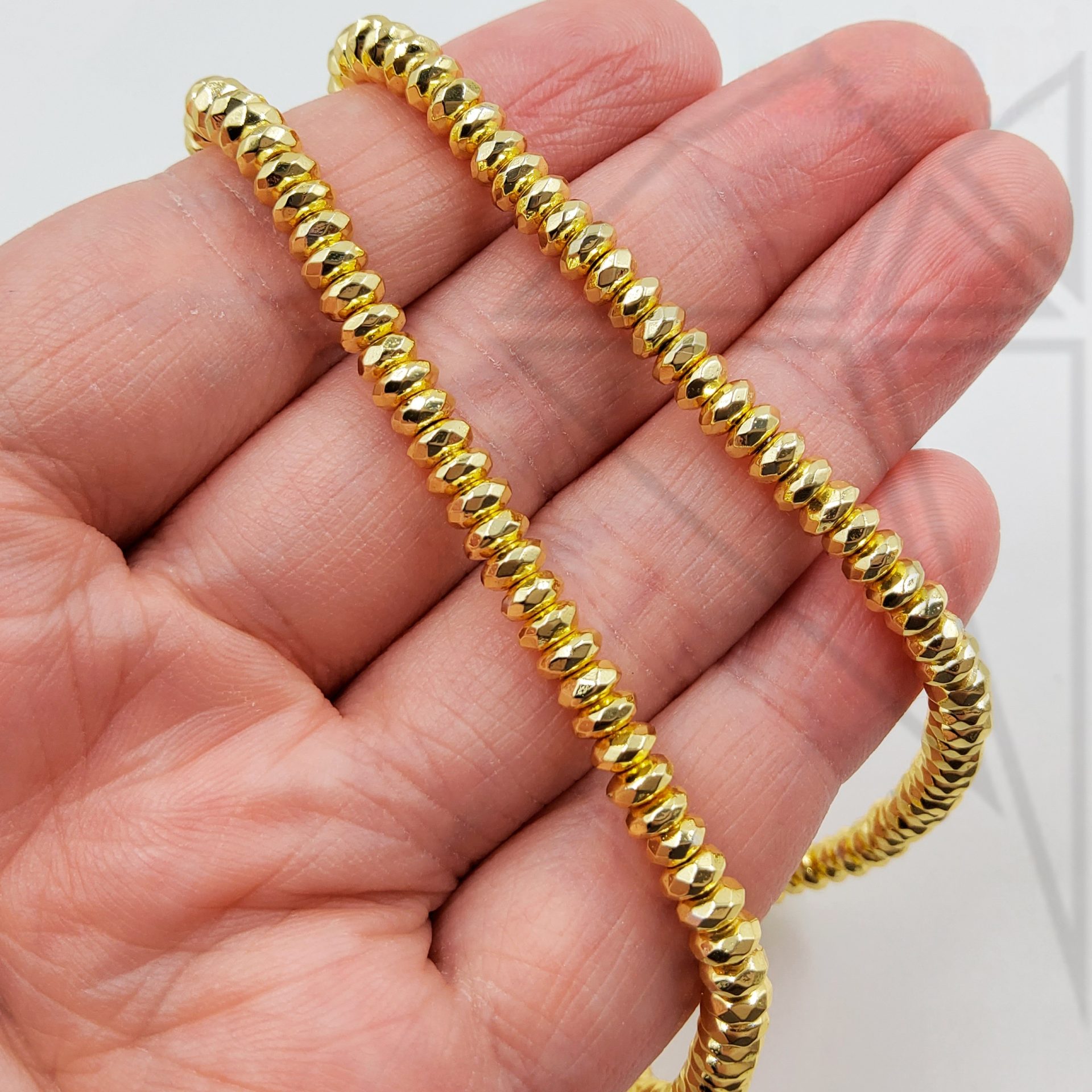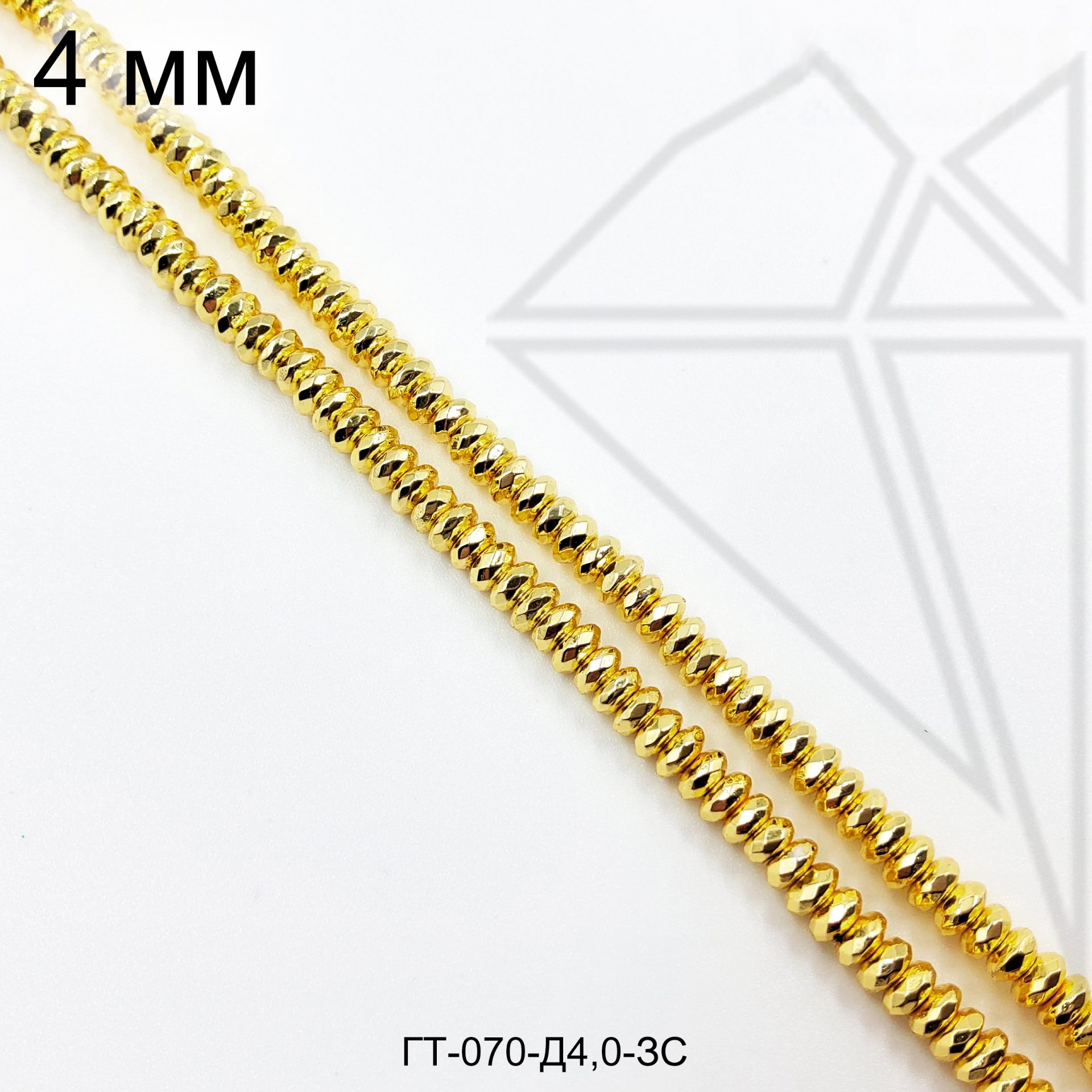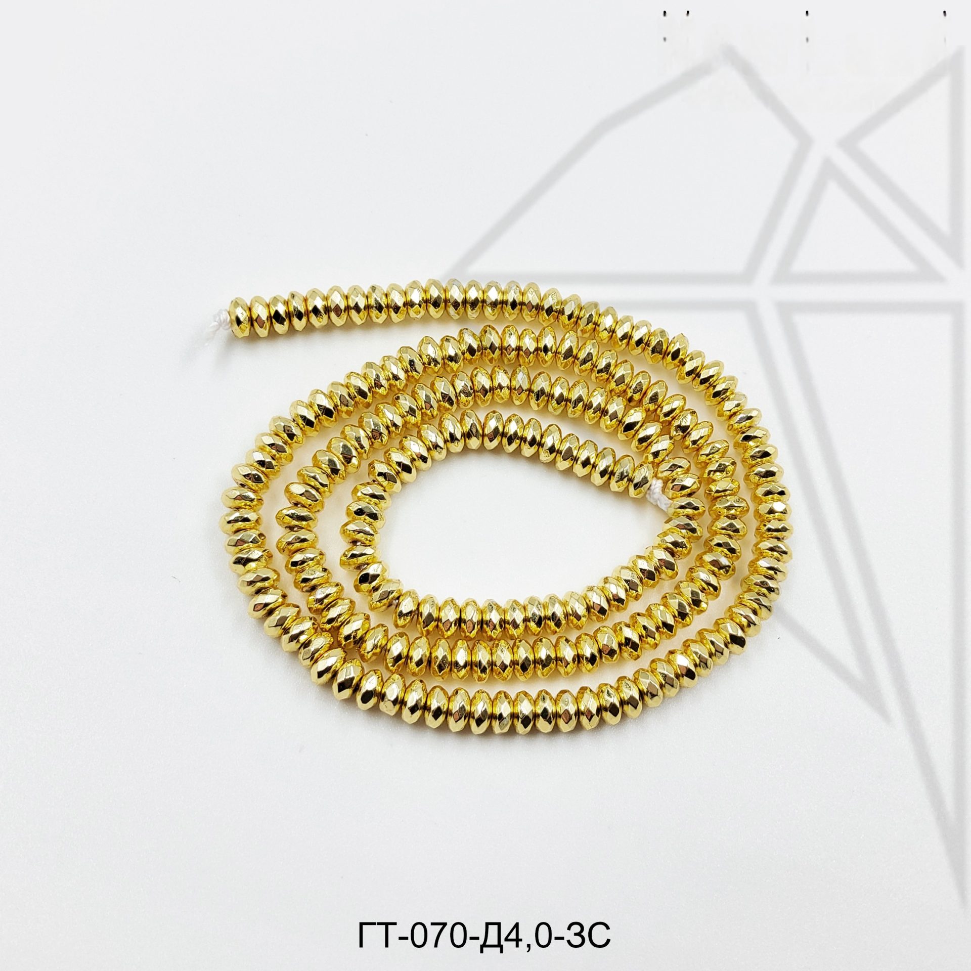 Гематит в форме ронделя с огранкой светло-золотого цвета.