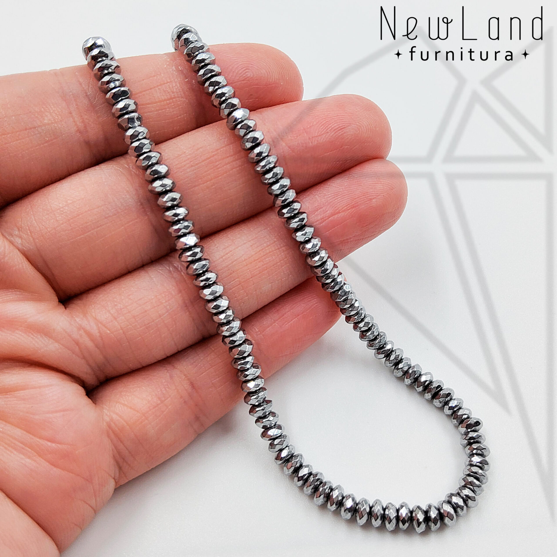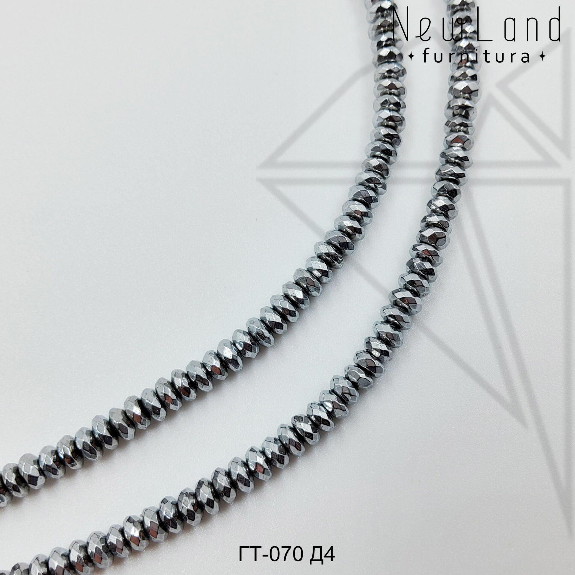 Гематит в форме ронделя с огранкой темно-серебристого цвета.