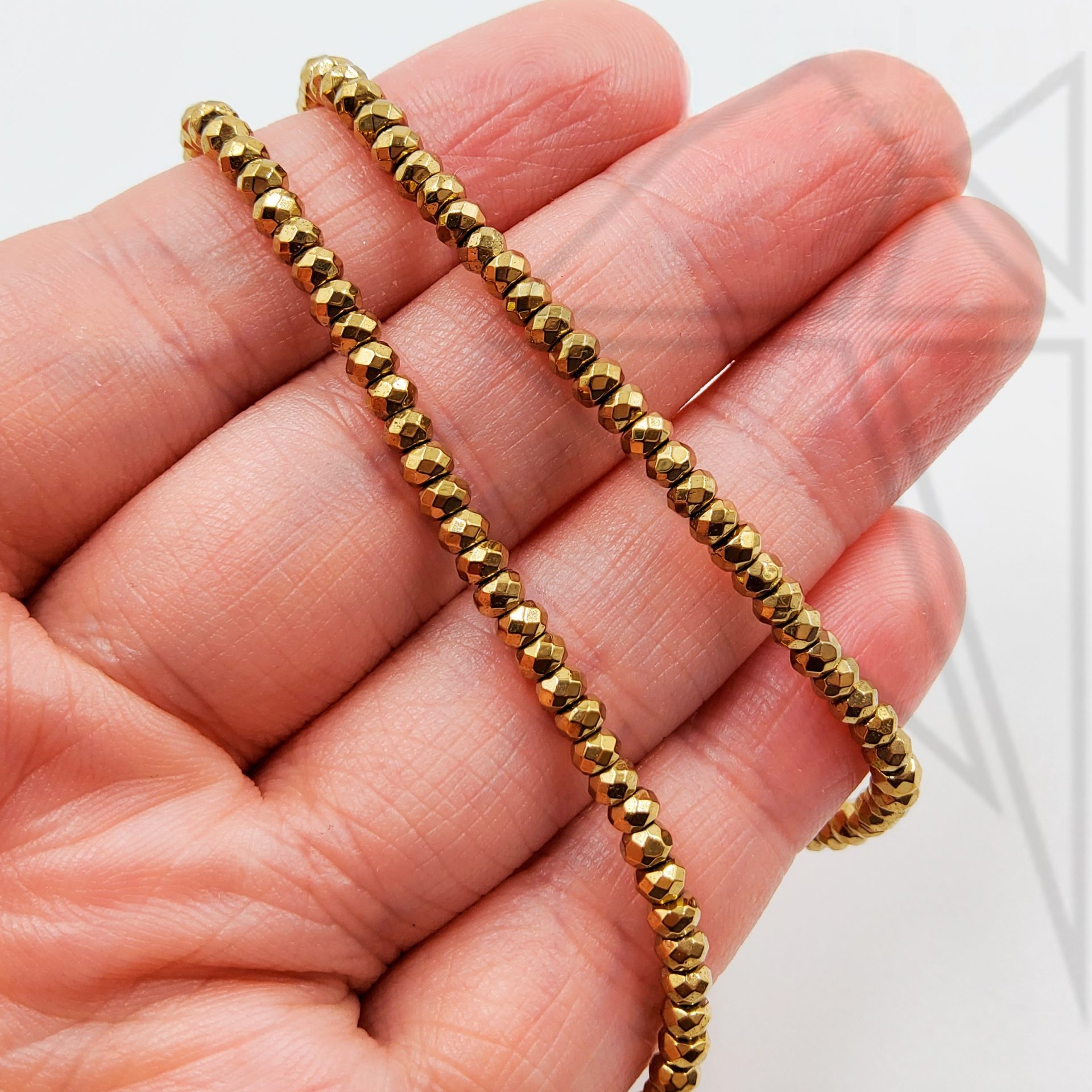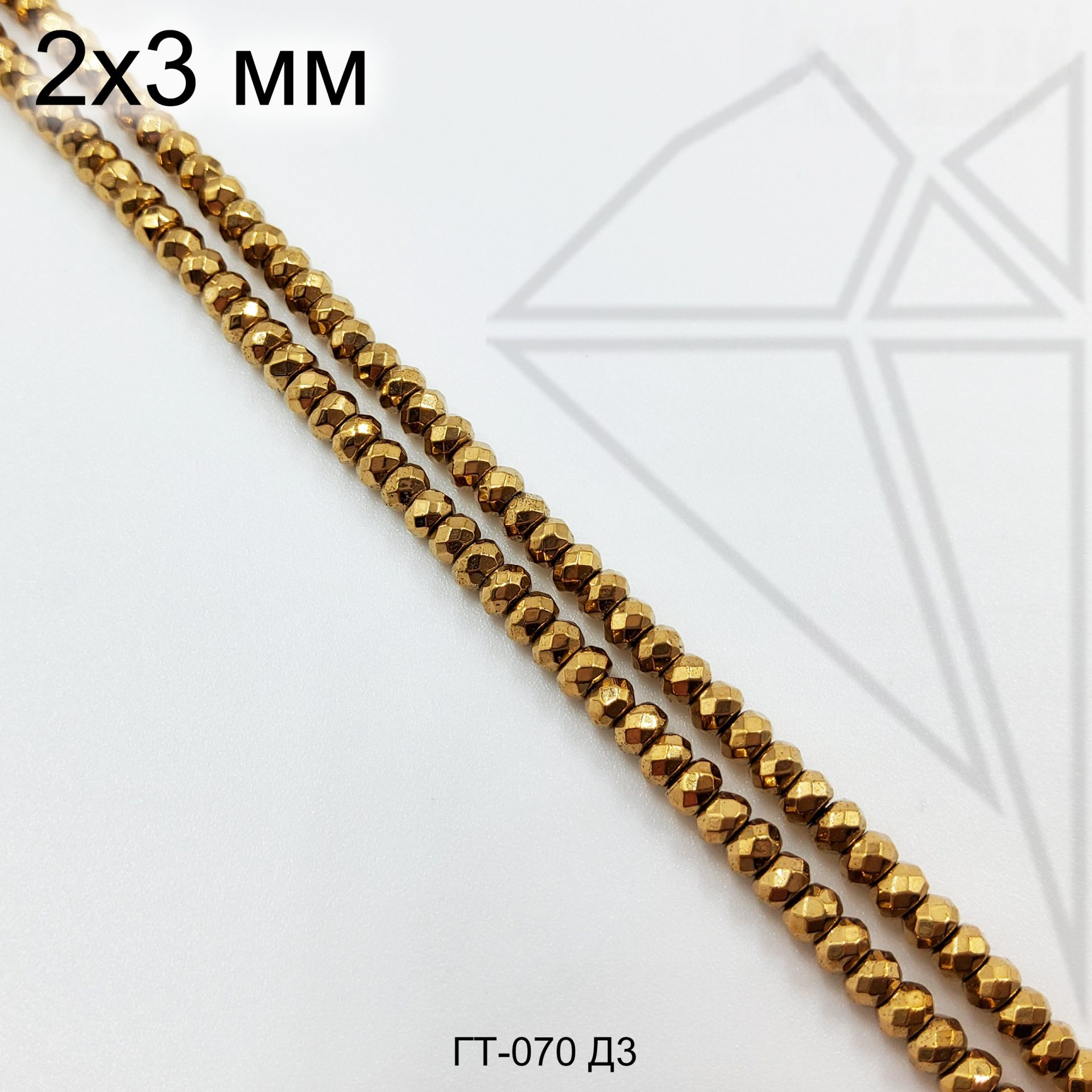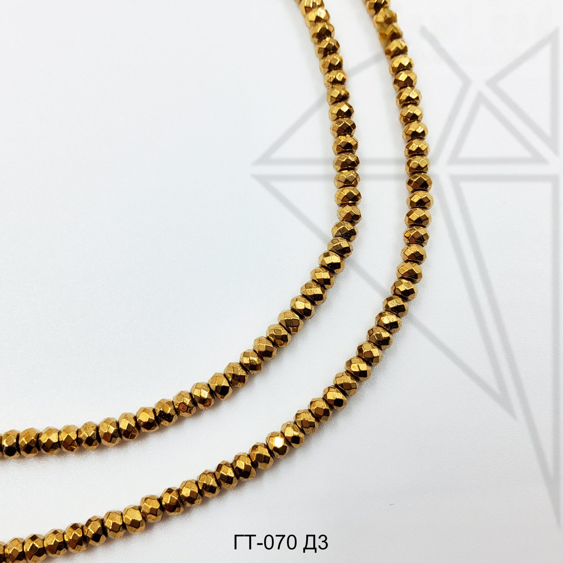 Гематит в форме ронделя с огранкой темно золотистого цвета.