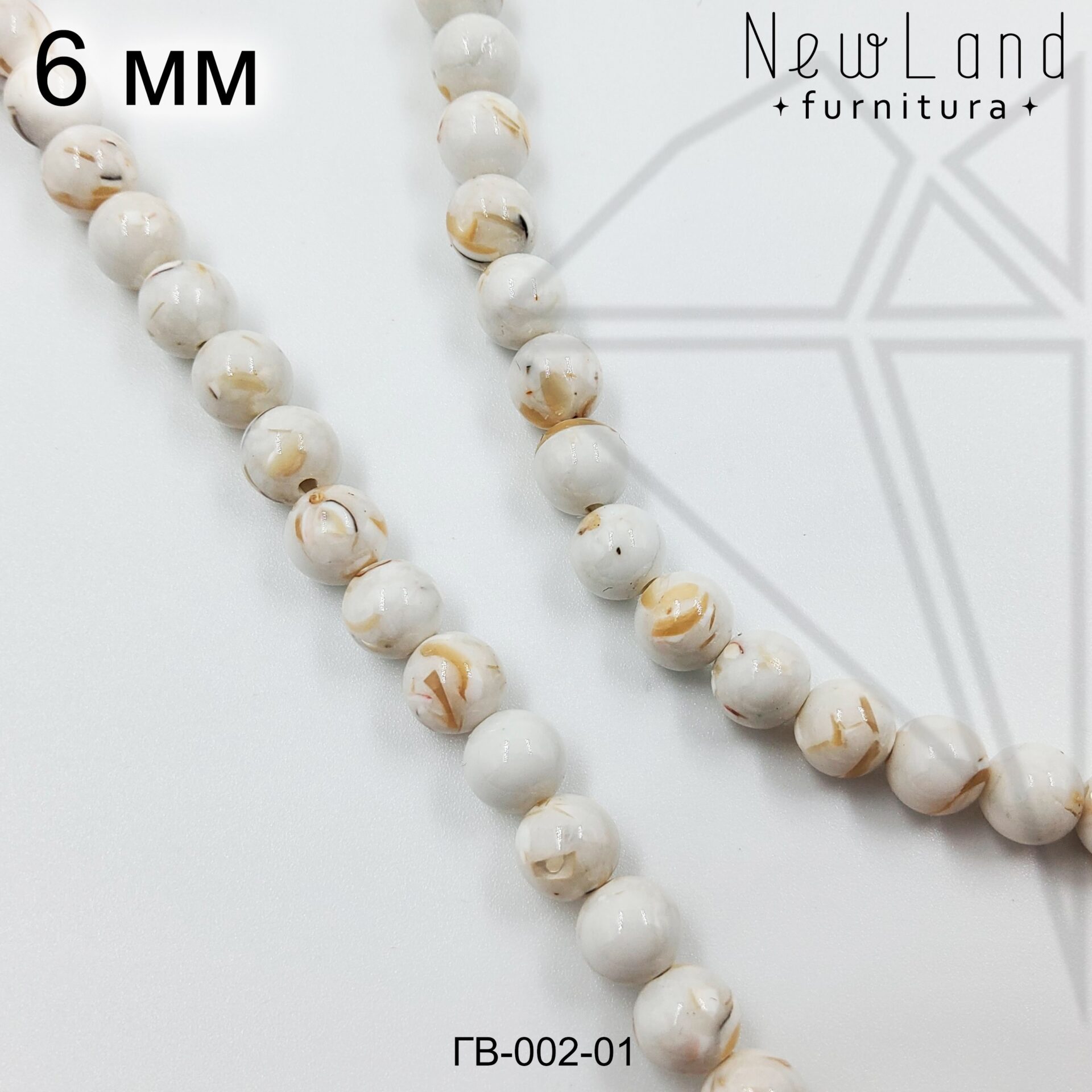 Будьте первым, кто оставил отзыв на “Говлит с перламутром белый круглый глянцевый 6 мм 1/2 нити”