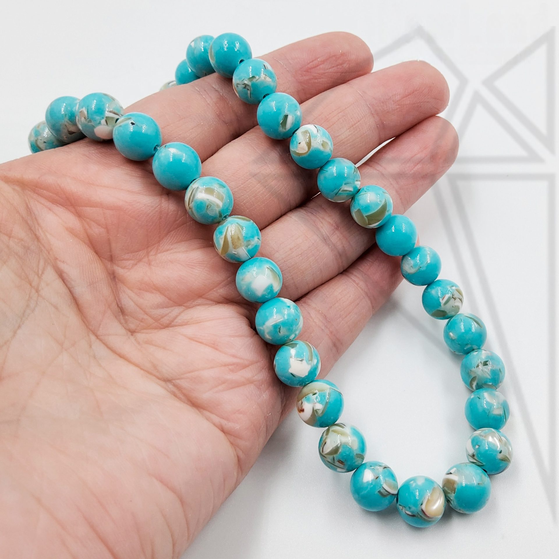 Говлит голубого цвета круглой формы с перламутром.