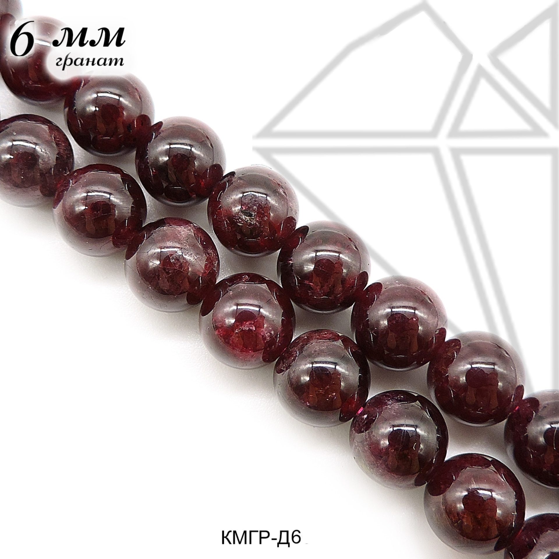 Гранат натуральный круглой формы 6 мм длина нити 37 см — 62 бусины.