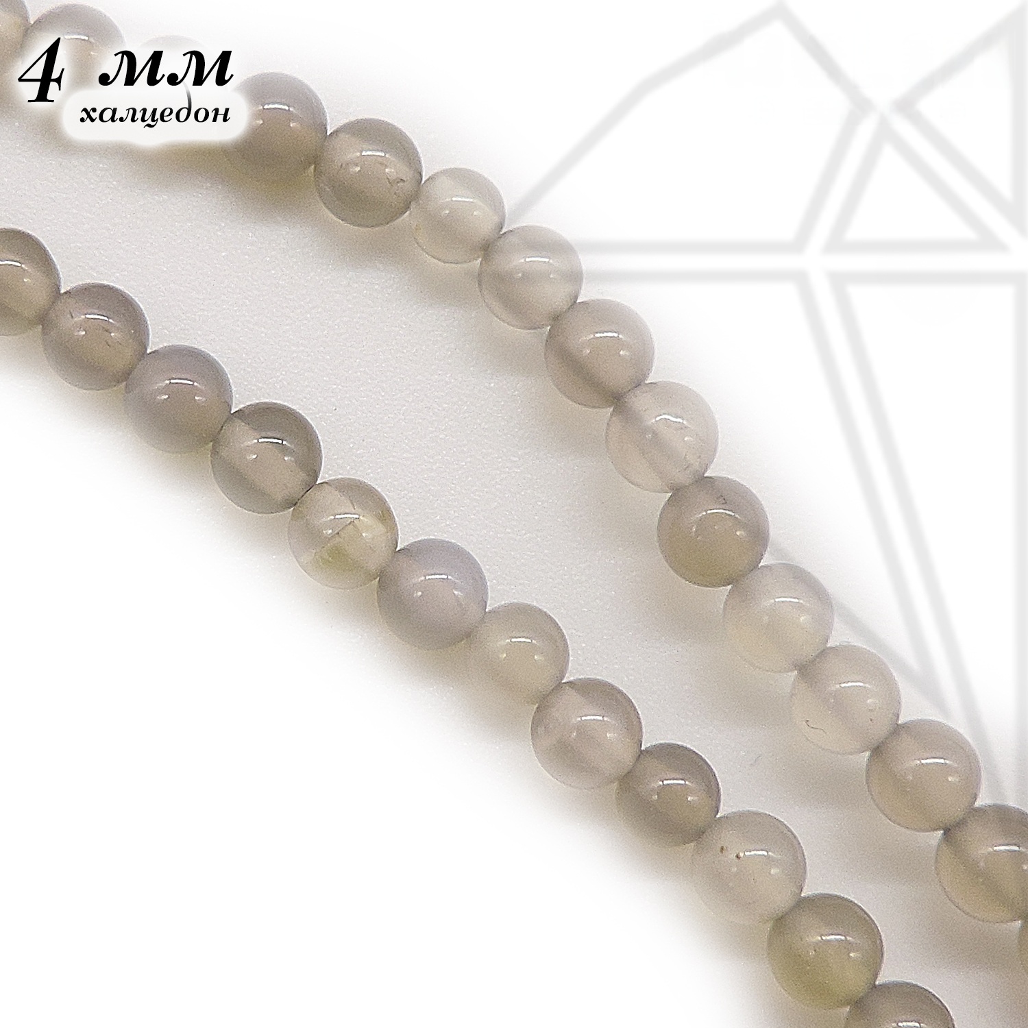 Халцедон серый натуральный круглой гладкой формы глянцевый 4 мм