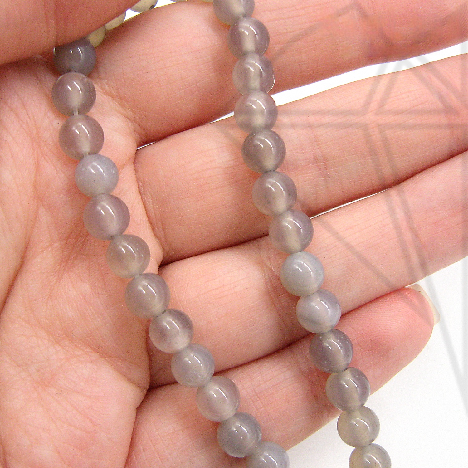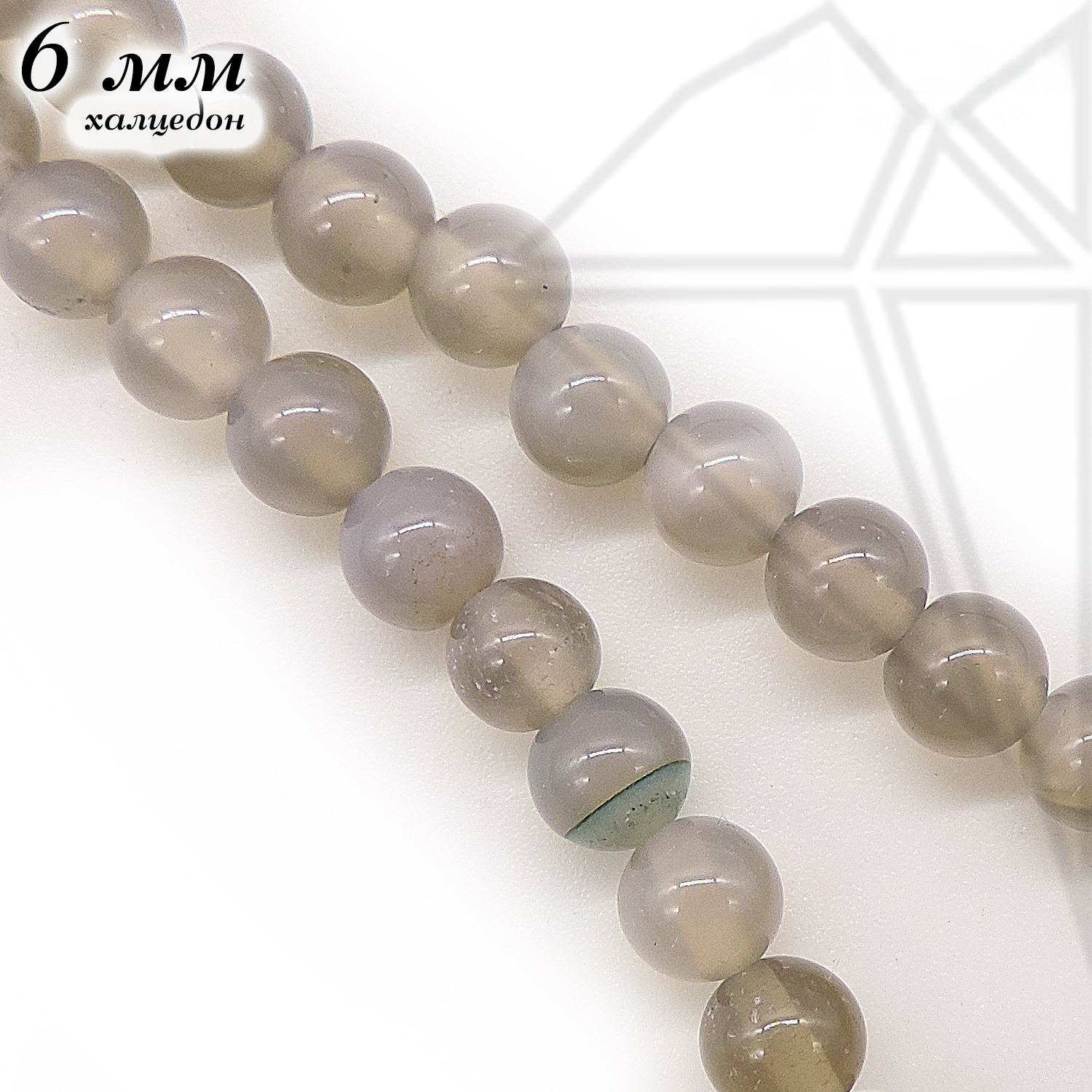 Халцедон серый натуральный круглой гладкой формы глянцевый 6 мм