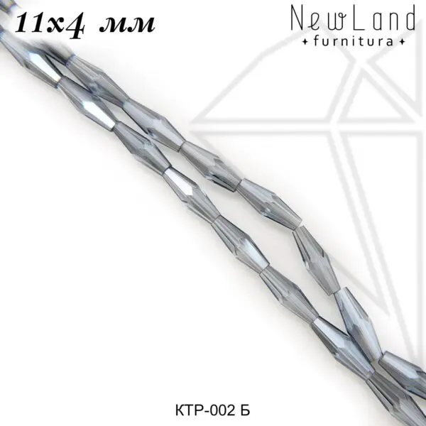 Хрустальные (стеклянные) бусины с огранкой 11х4 мм 40 см в форме длинного биконуса серебристого цвета