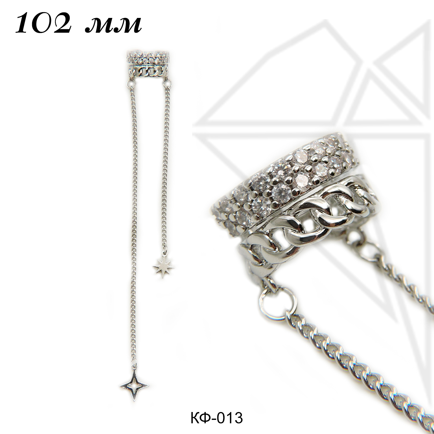 Каффа с подвесками звездочками с родированным покрытием 102 мм.