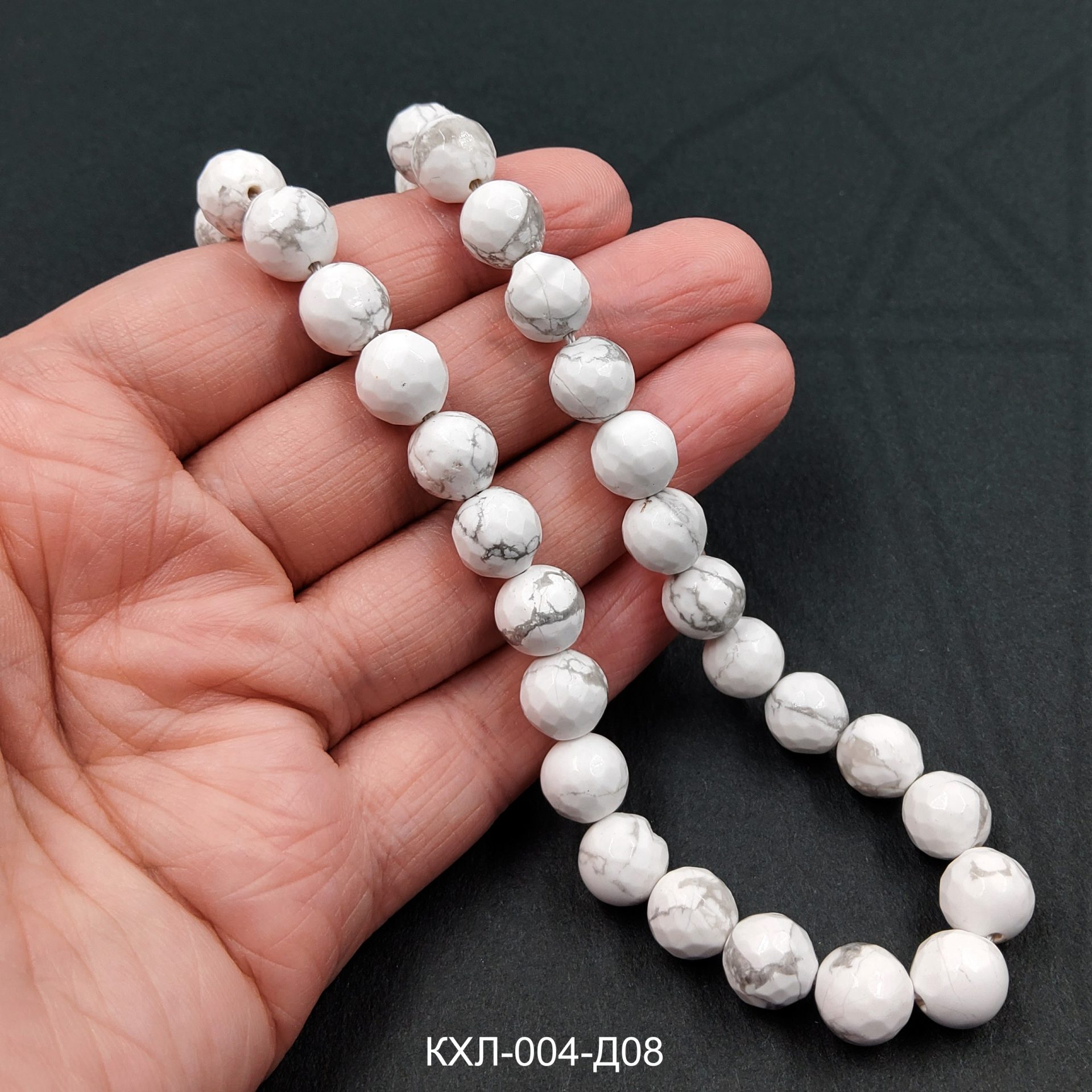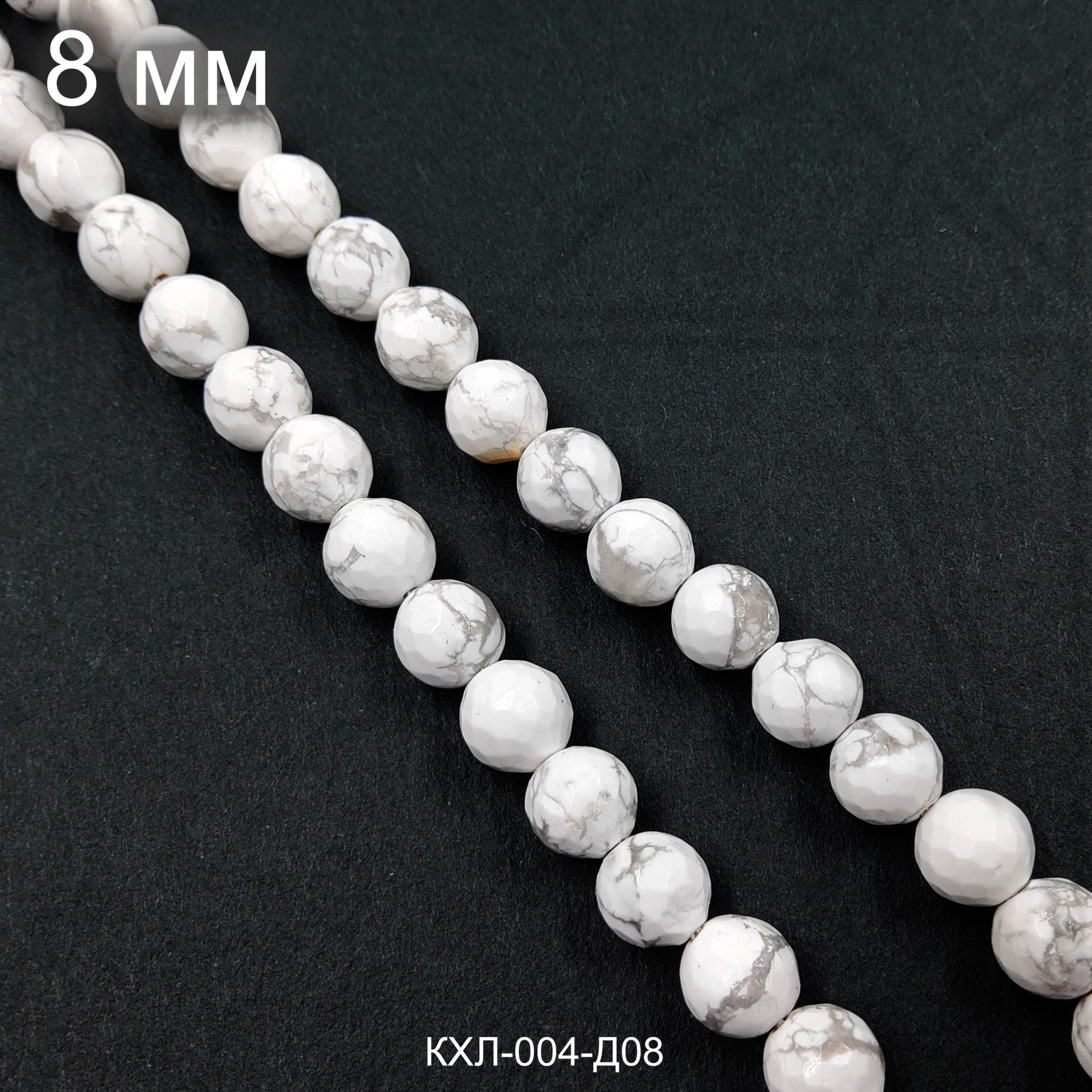 Кахолонг круглой формы с огранкой глянцевый 8 мм.