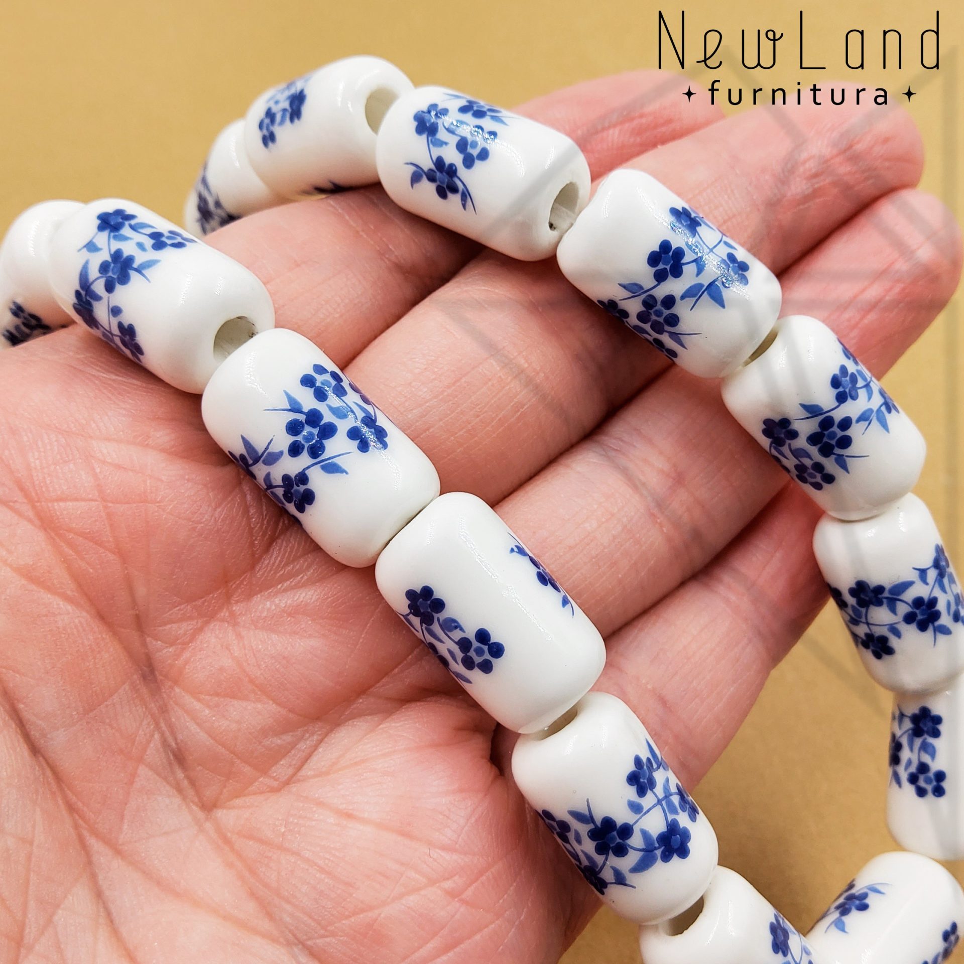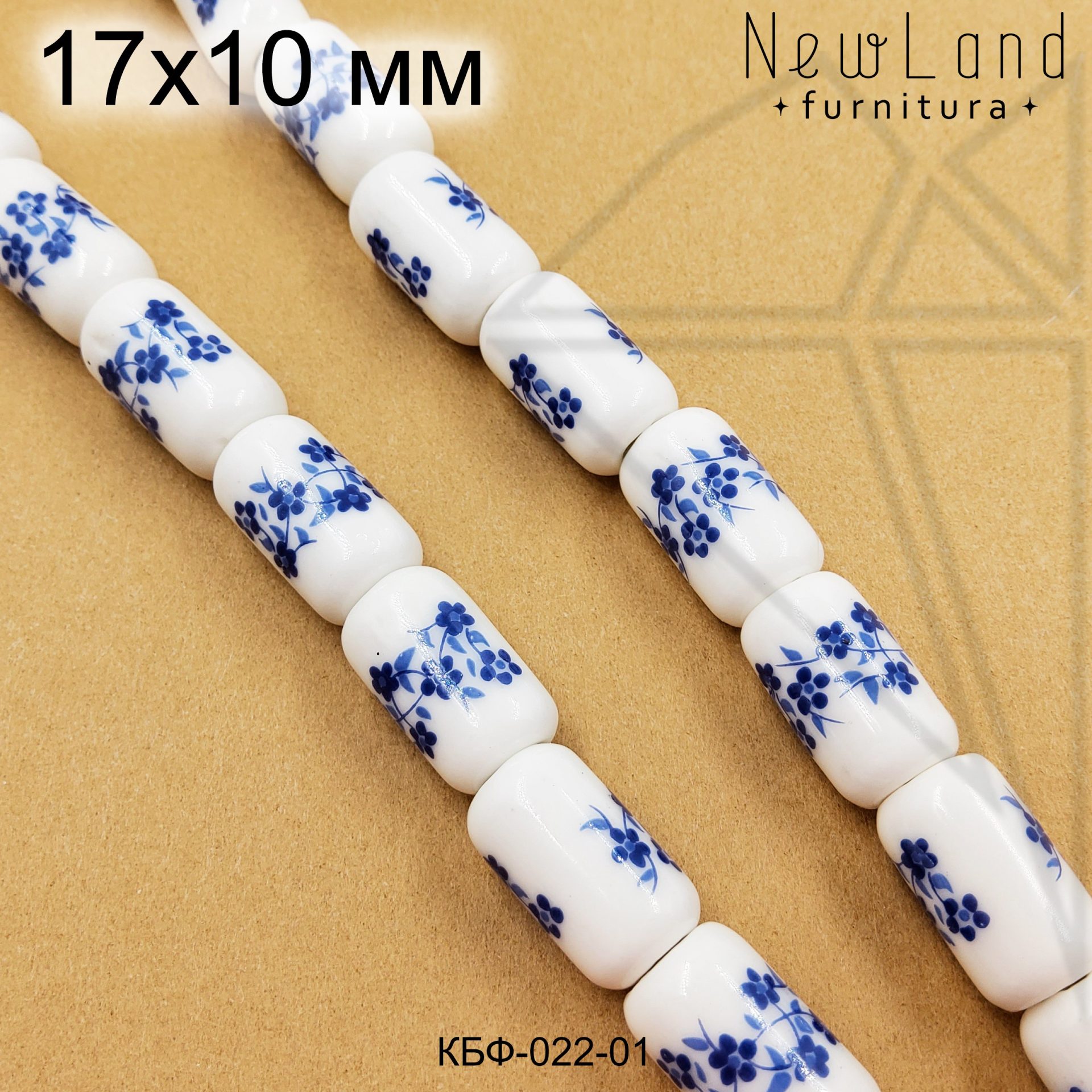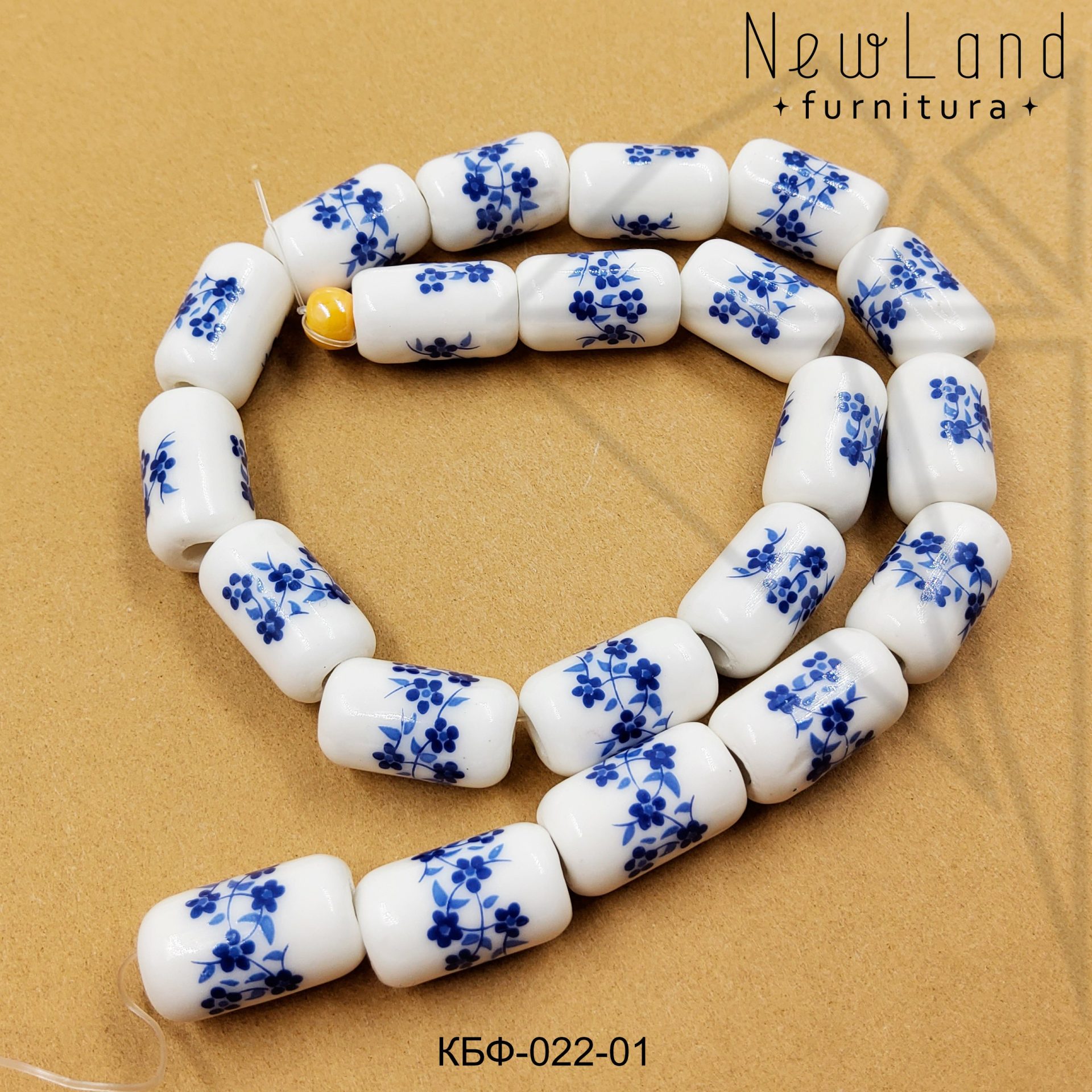Керамическая бусина гжель в форме бочки с синим рисунком