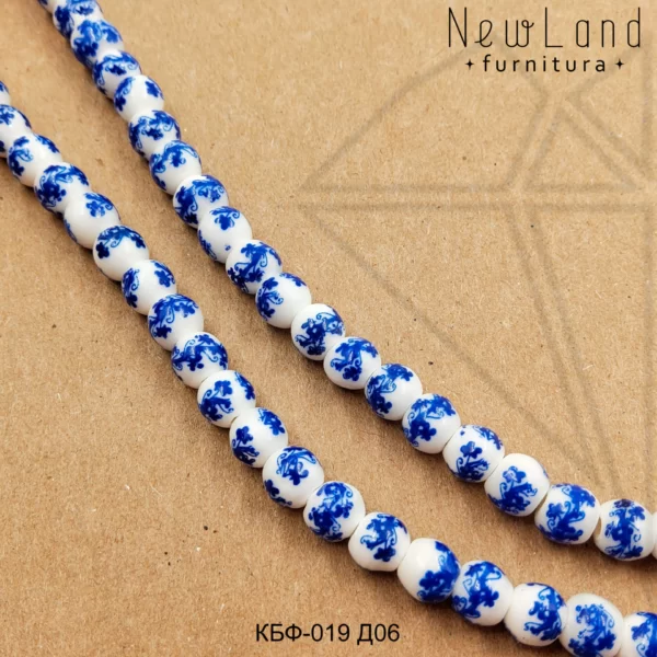 Керамическая бусина круглая белая гжель диаметром 6 мм