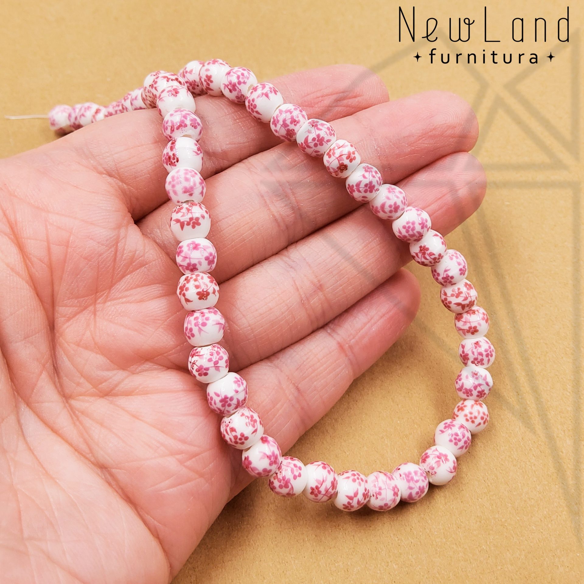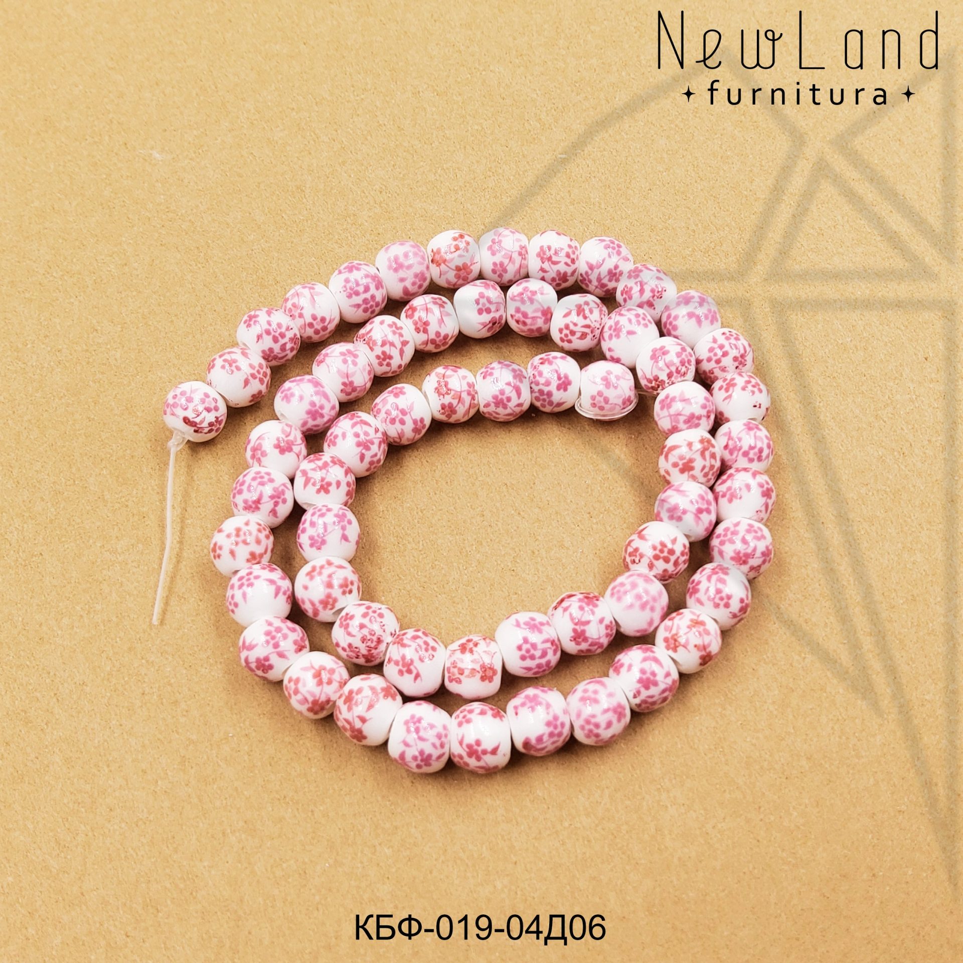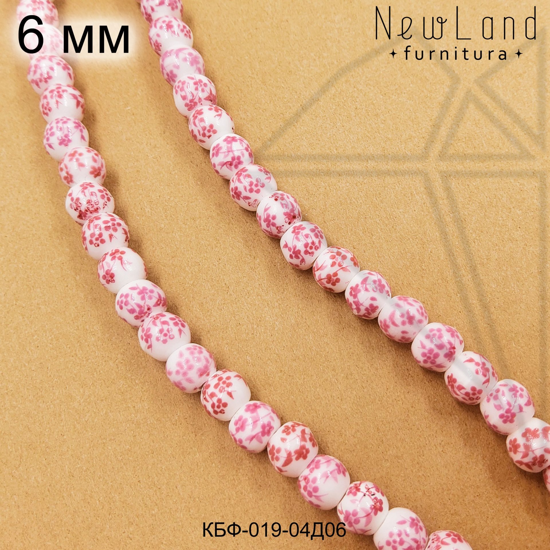 Керамическая бусина круглая белая гжель розового цвета диаметром 6 мм