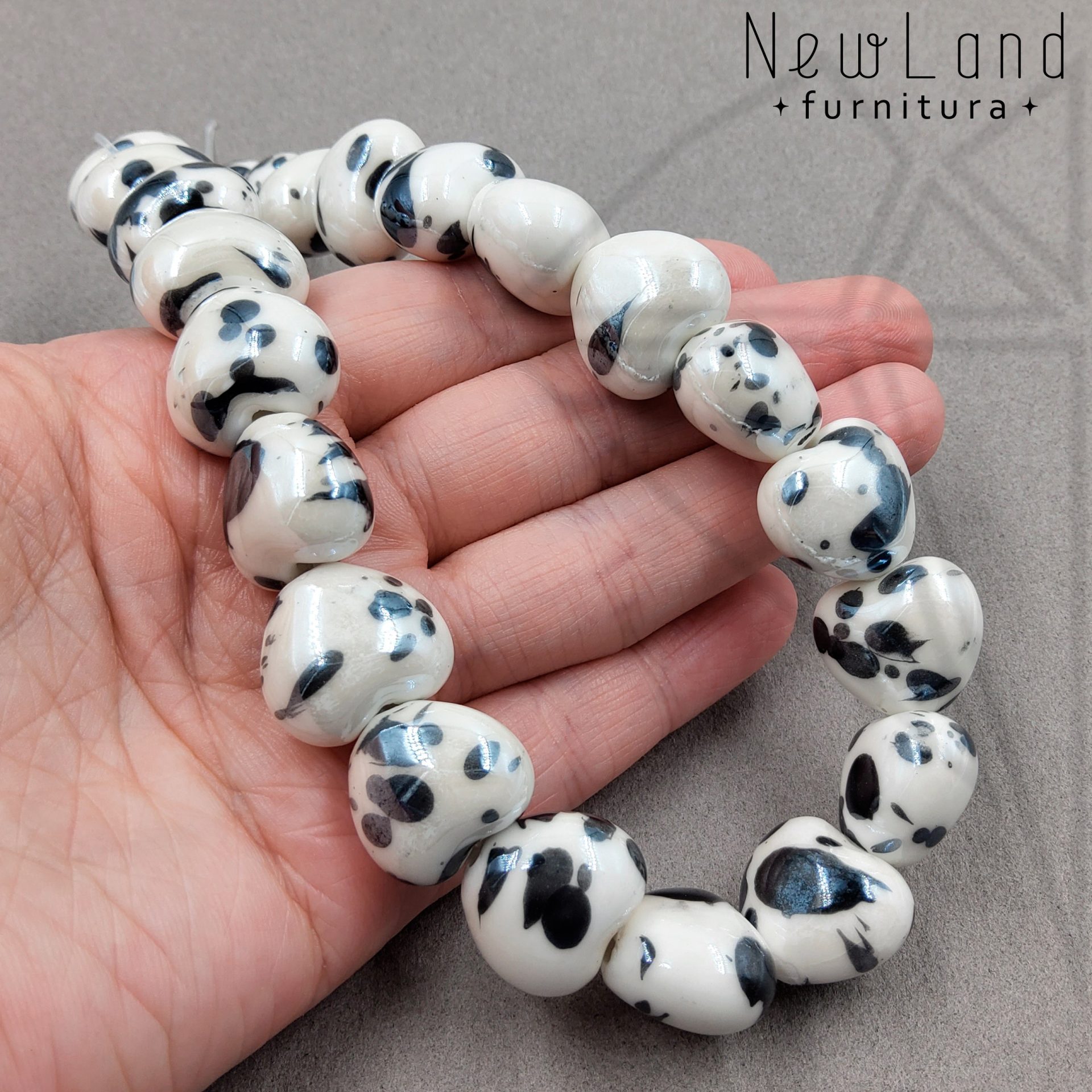 Керамическая бусина белая пятнистая сердце 15×17 мм