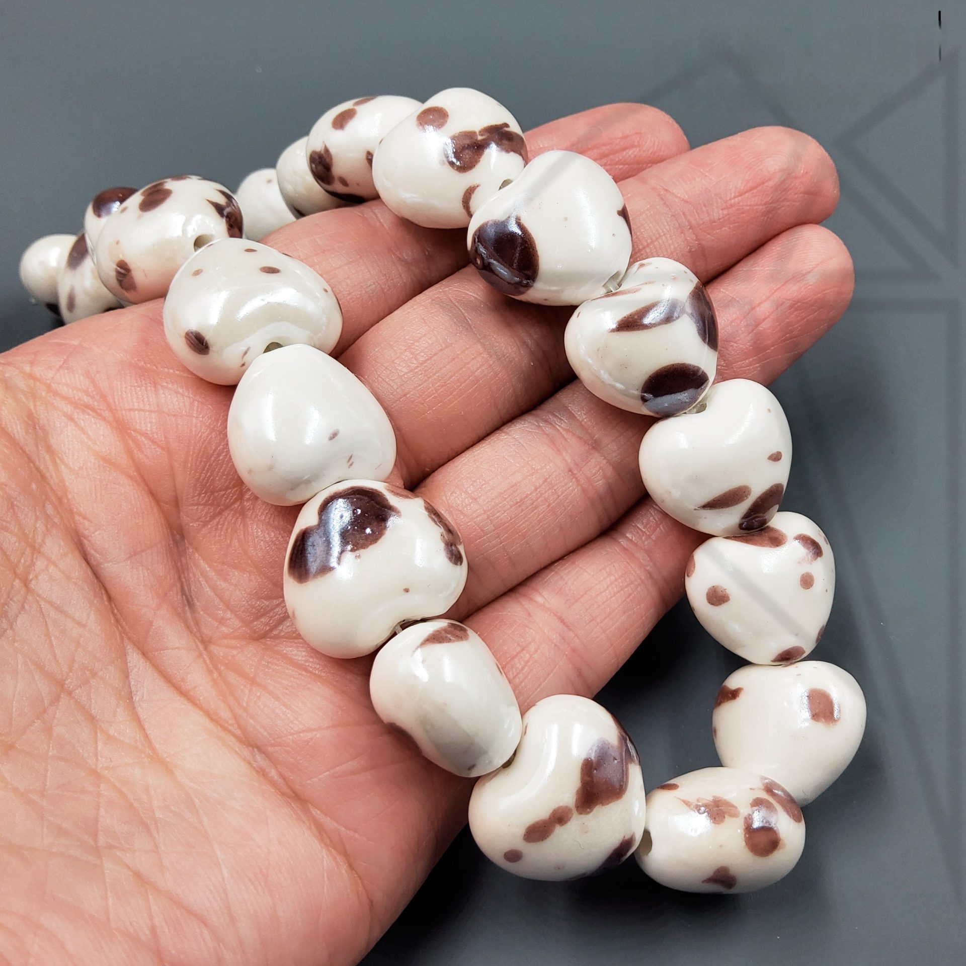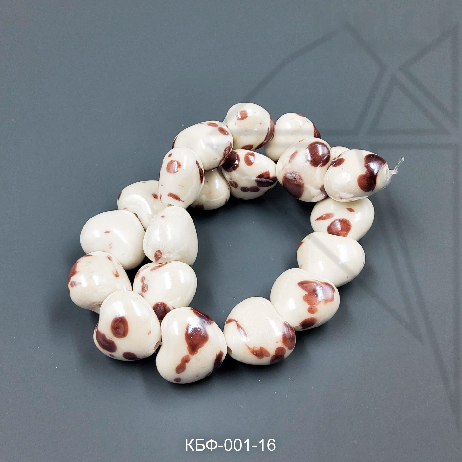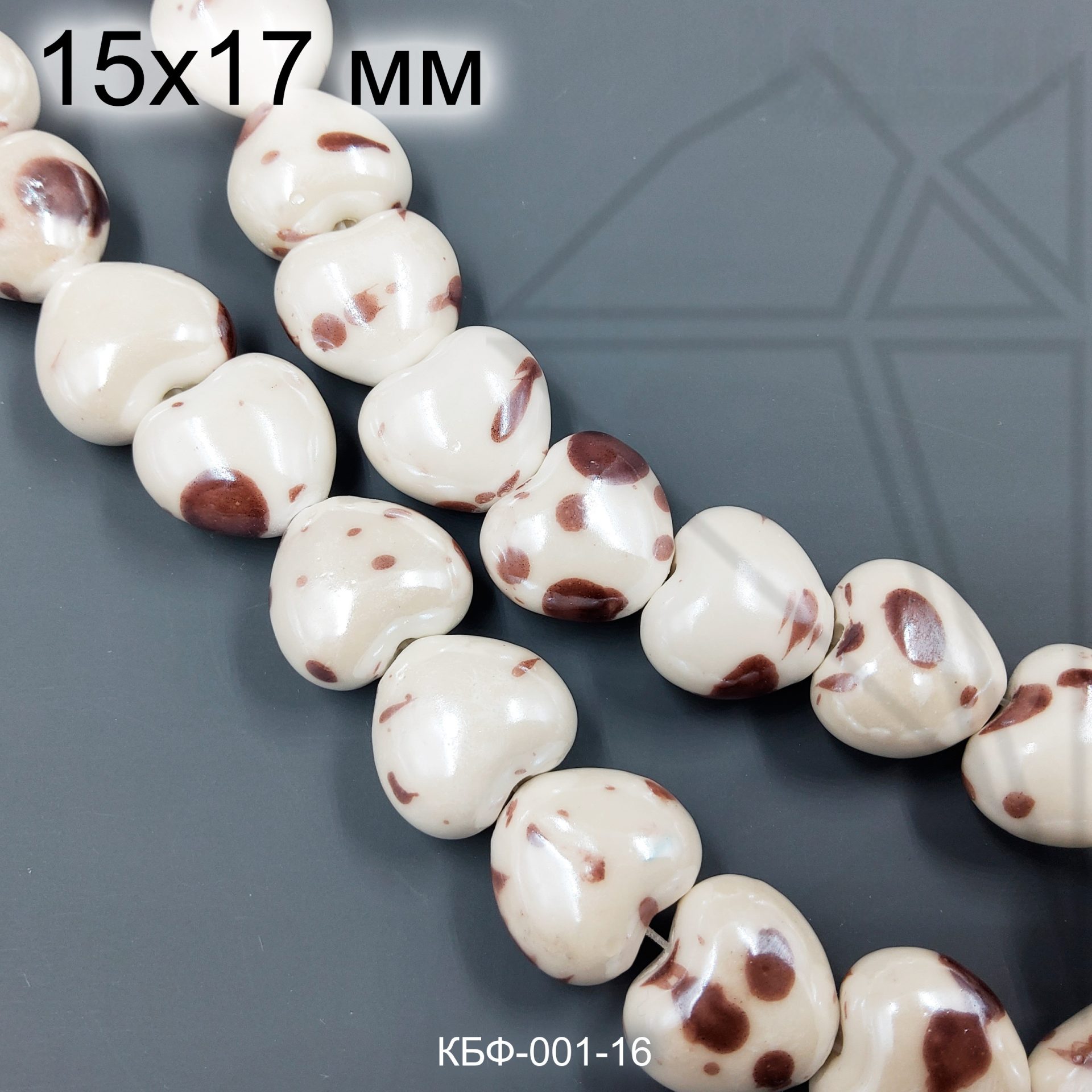 Керамическая бусина коричневая пятнистая сердце 15×17 мм