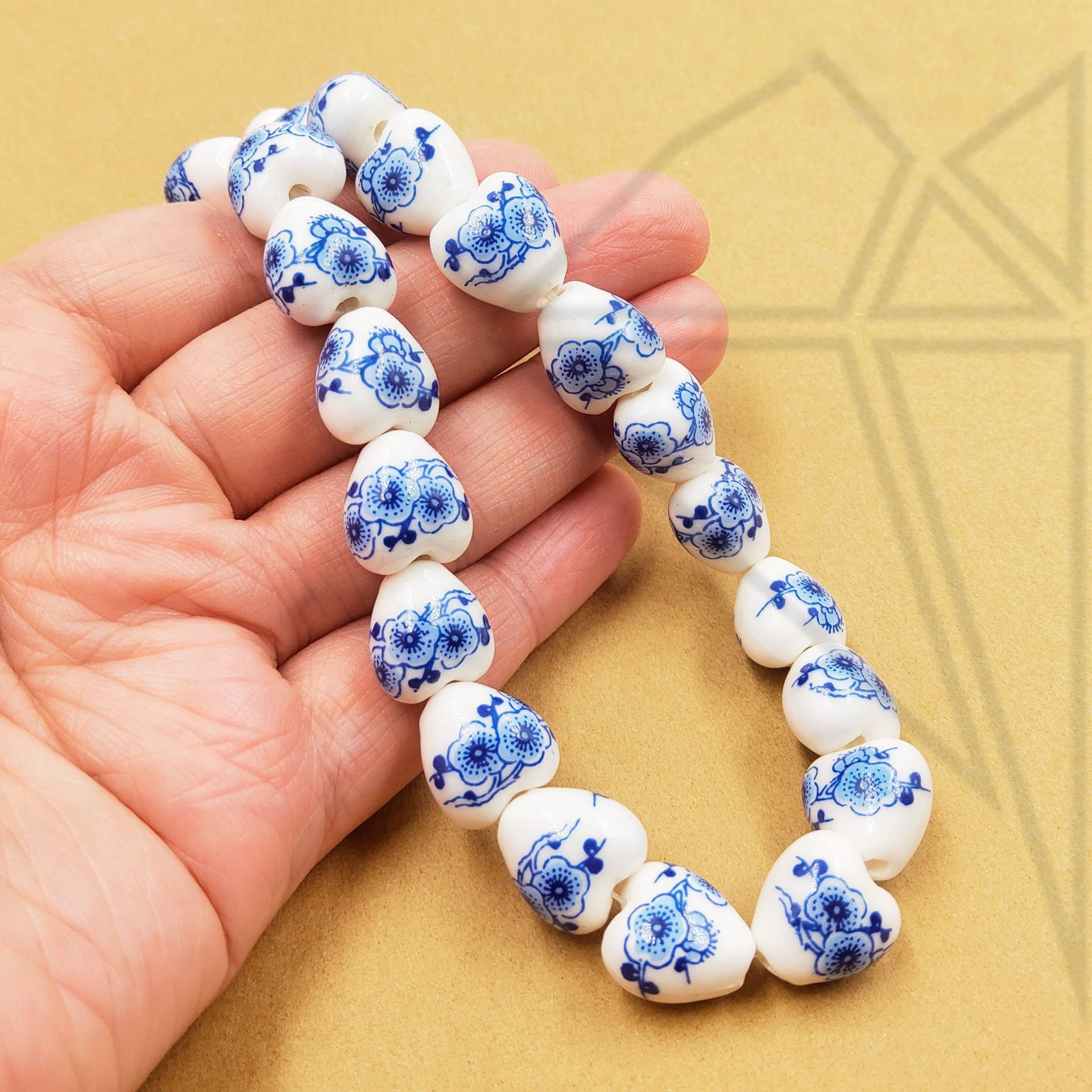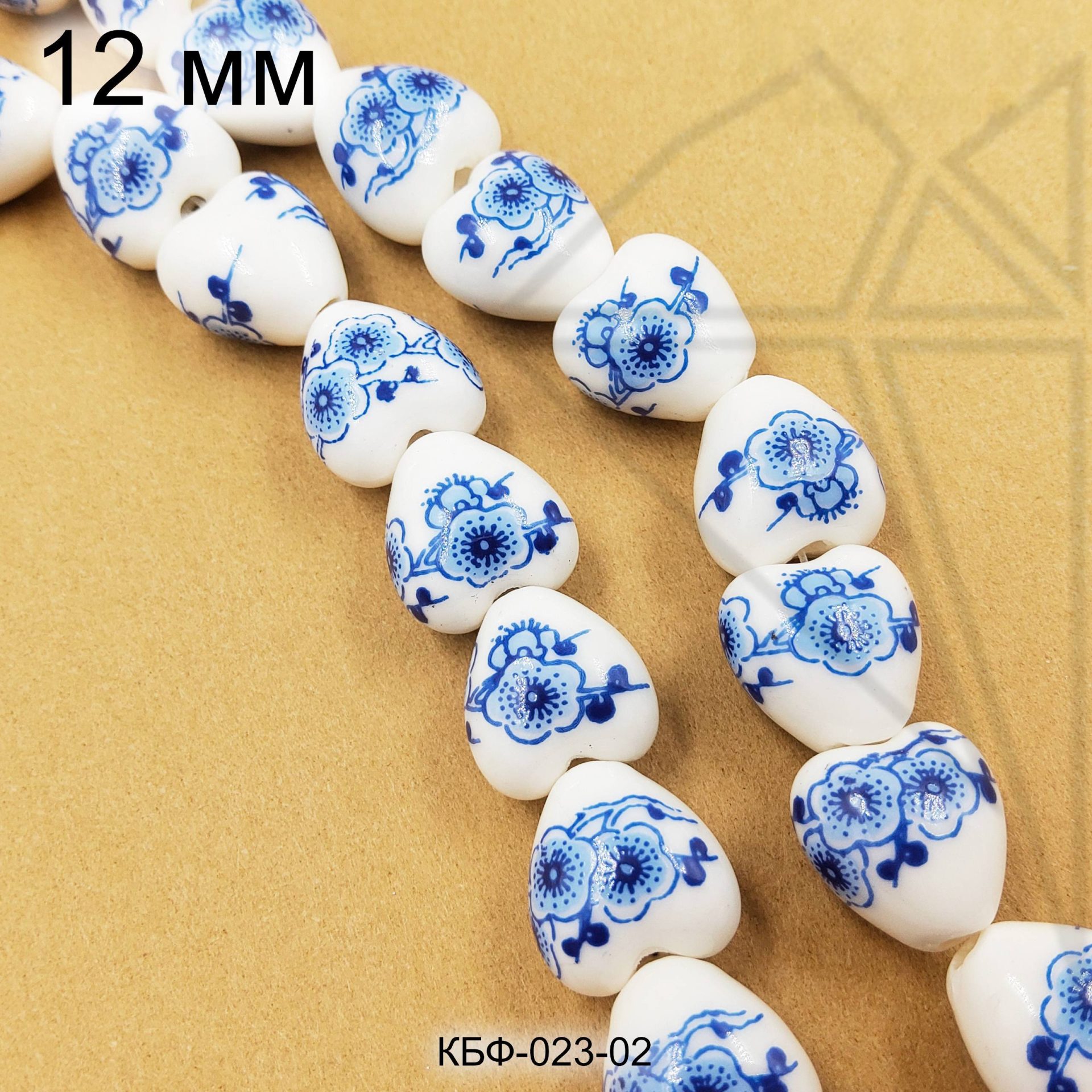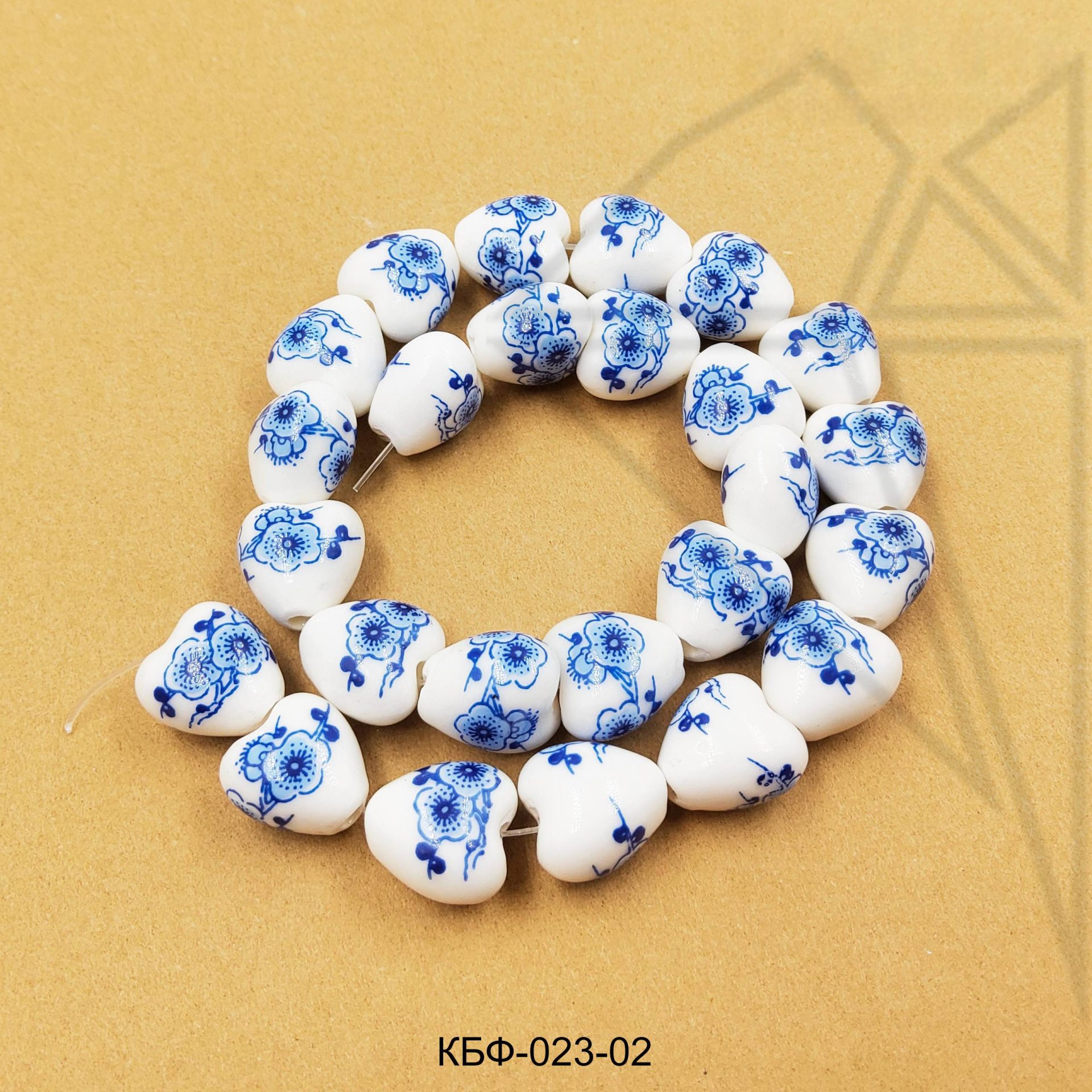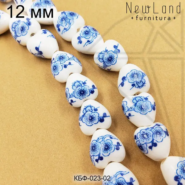 Керамическая бусина гжель в форме сердечка с голубым рисунком
