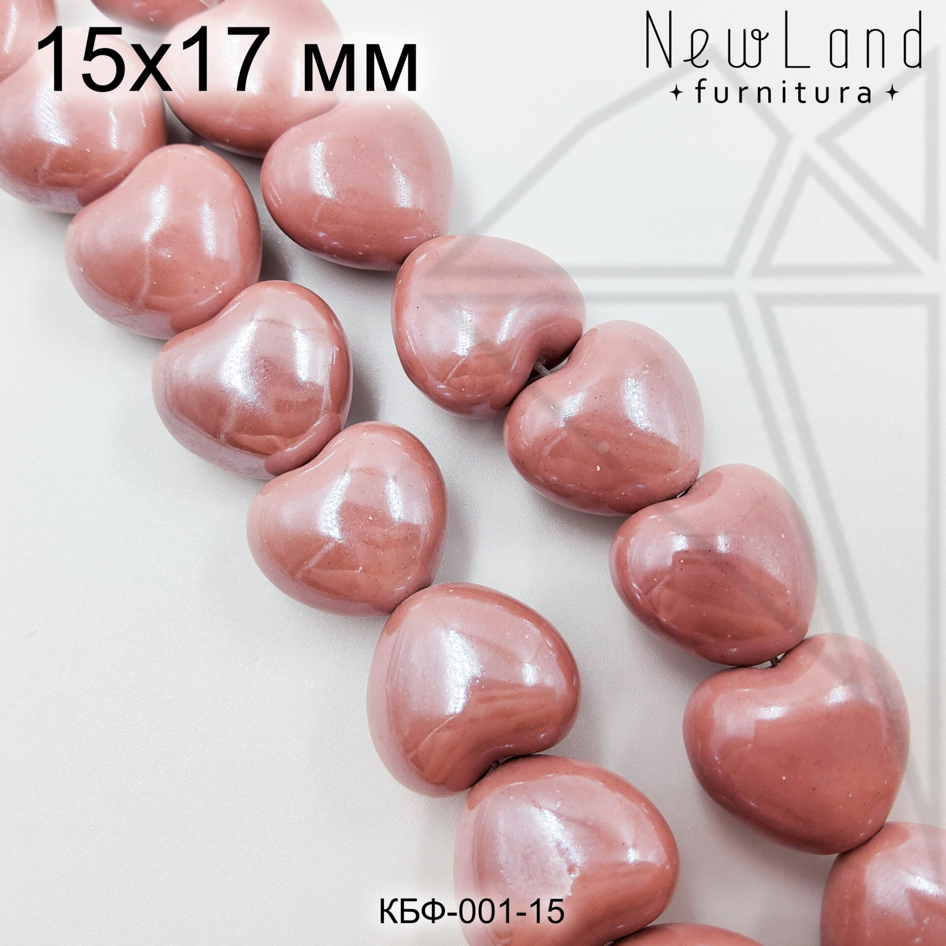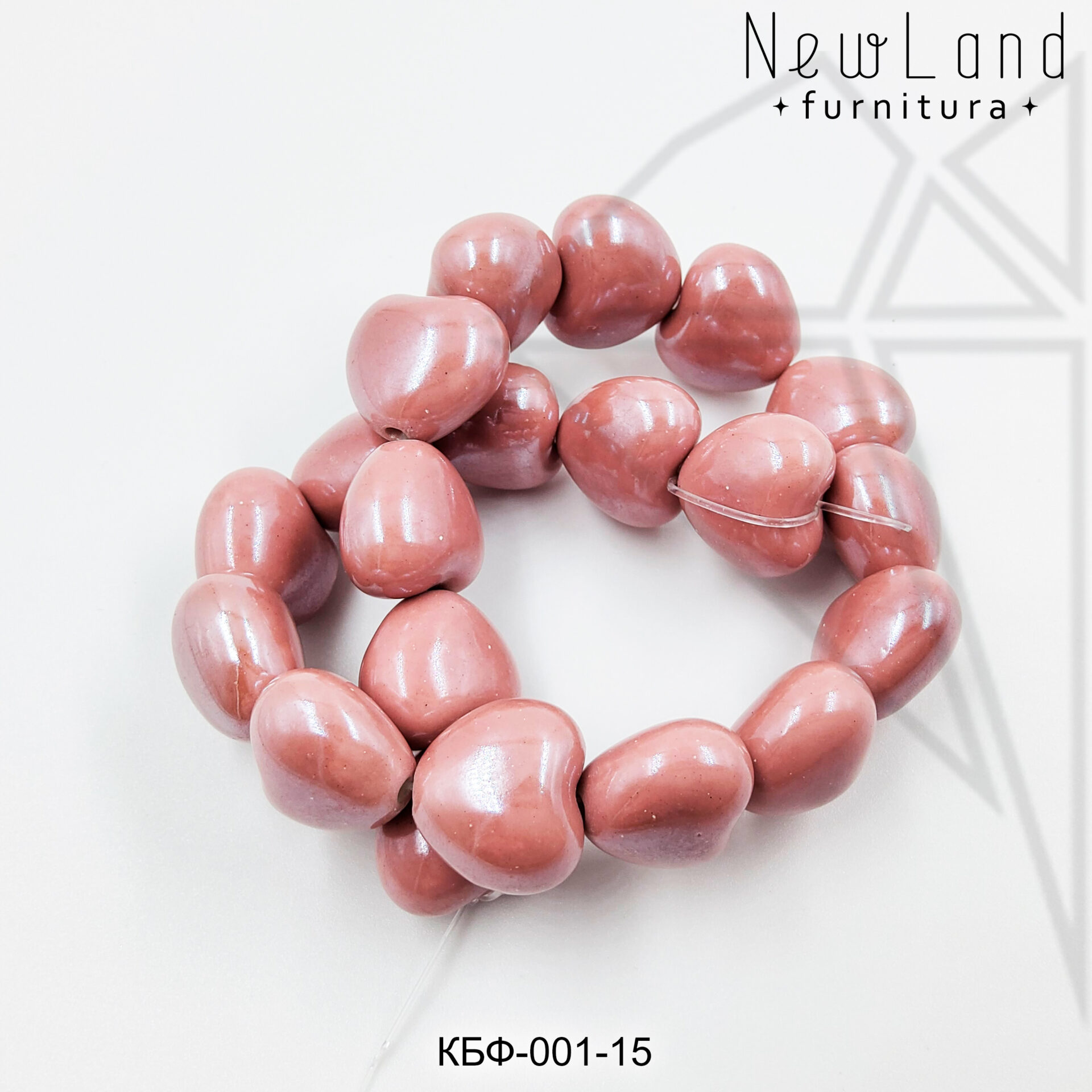 Керамическая бусина цвета пыльная роза сердце 15×17 мм