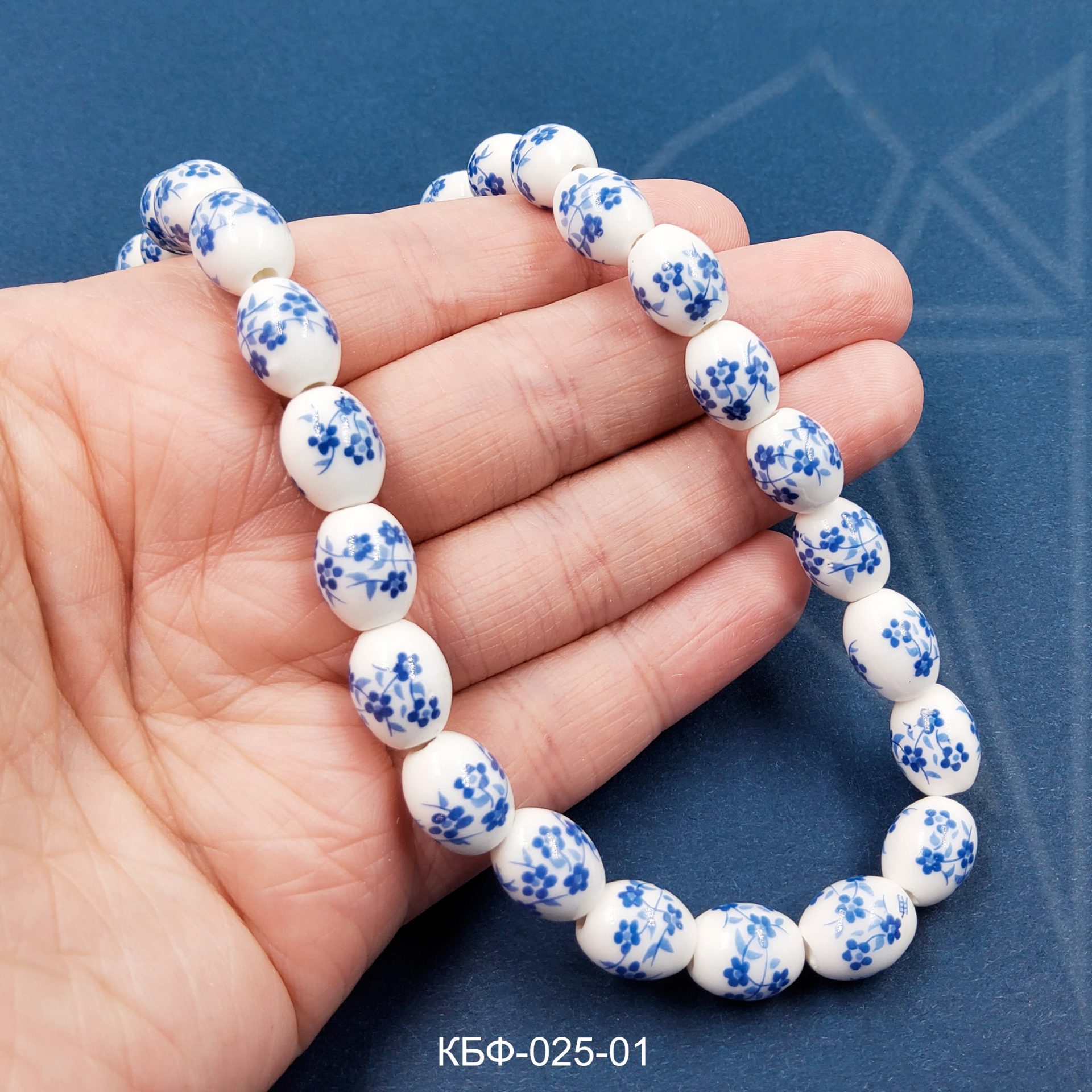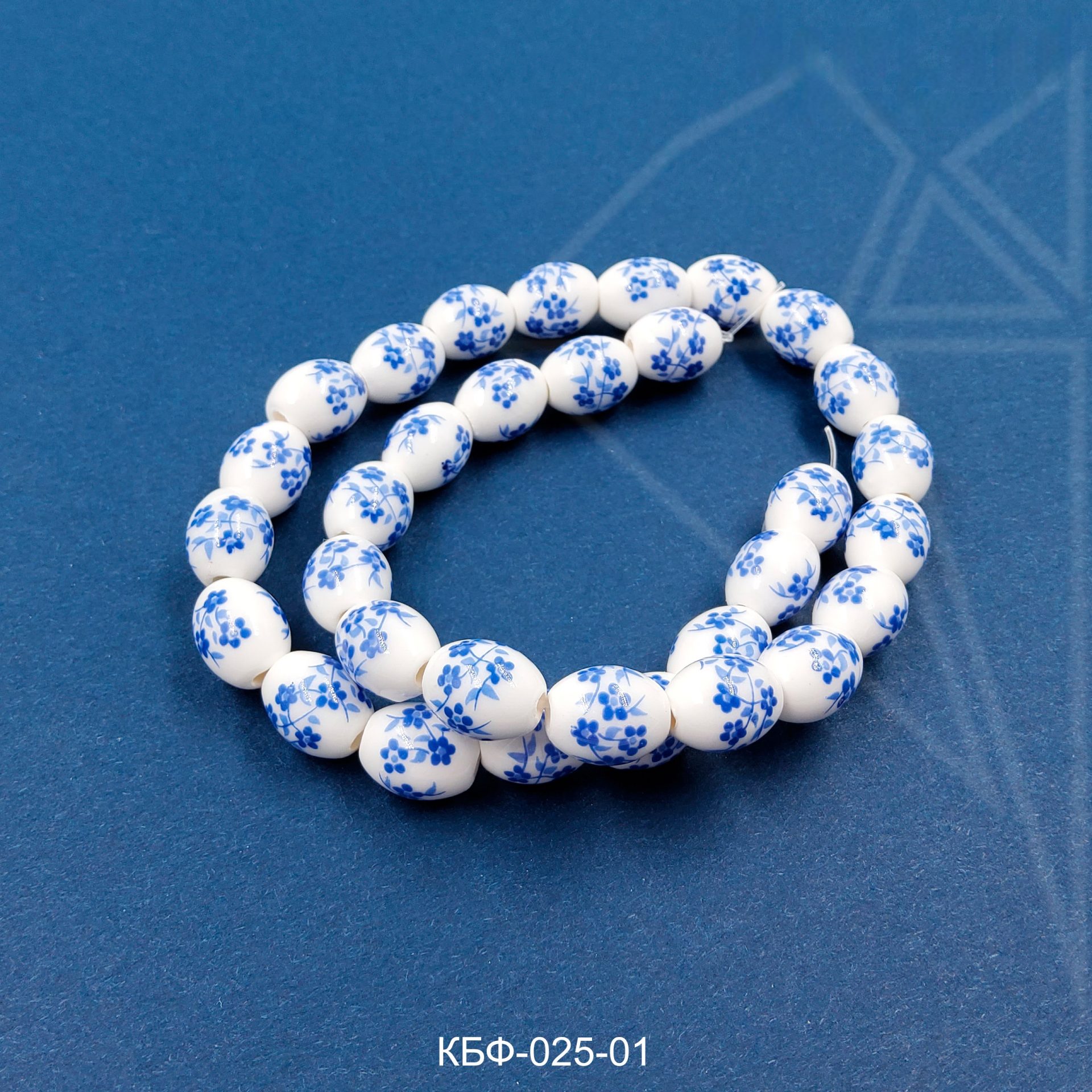 Керамические бусины гжель в форме «оливки» с синим рисунком