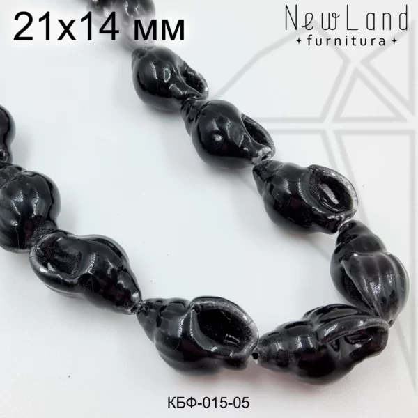 Ракушки керамические черного цвета на нити.