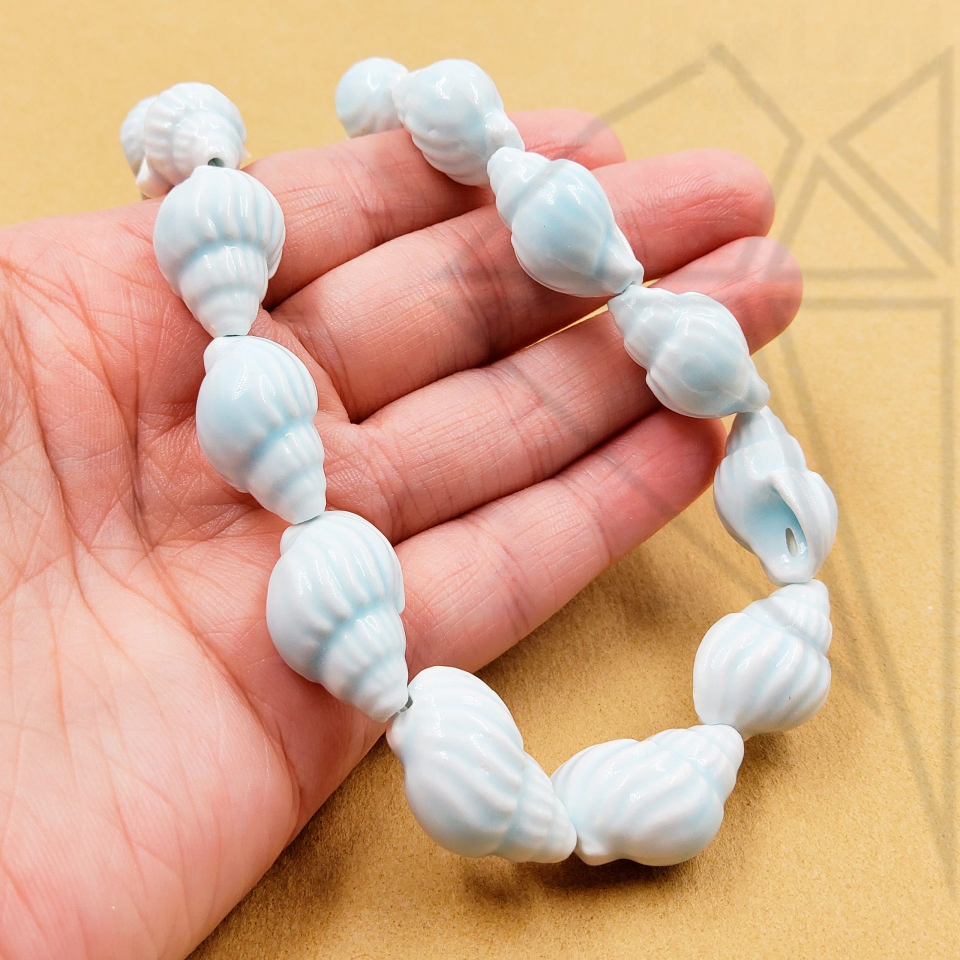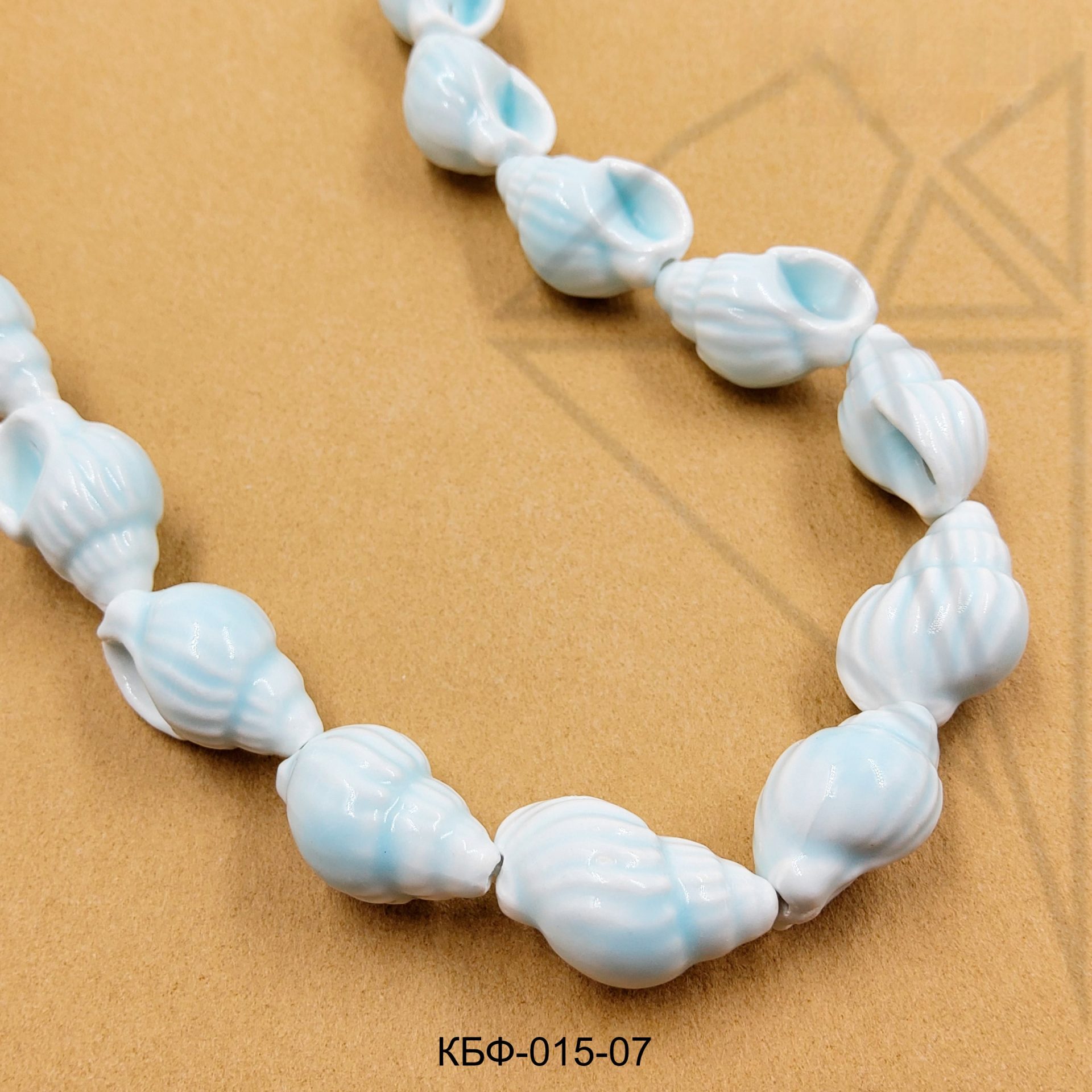 Ракушки керамические голубого цвета на нити.