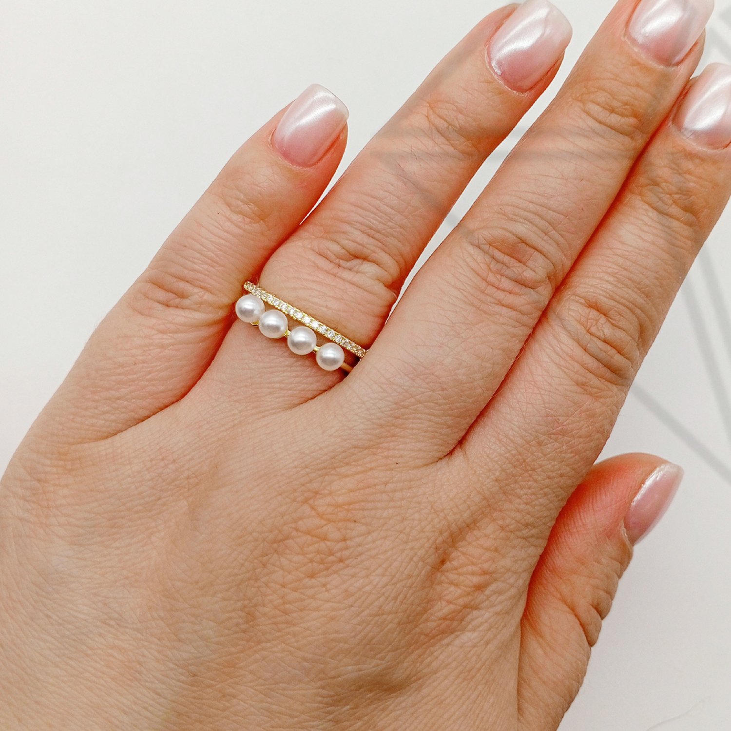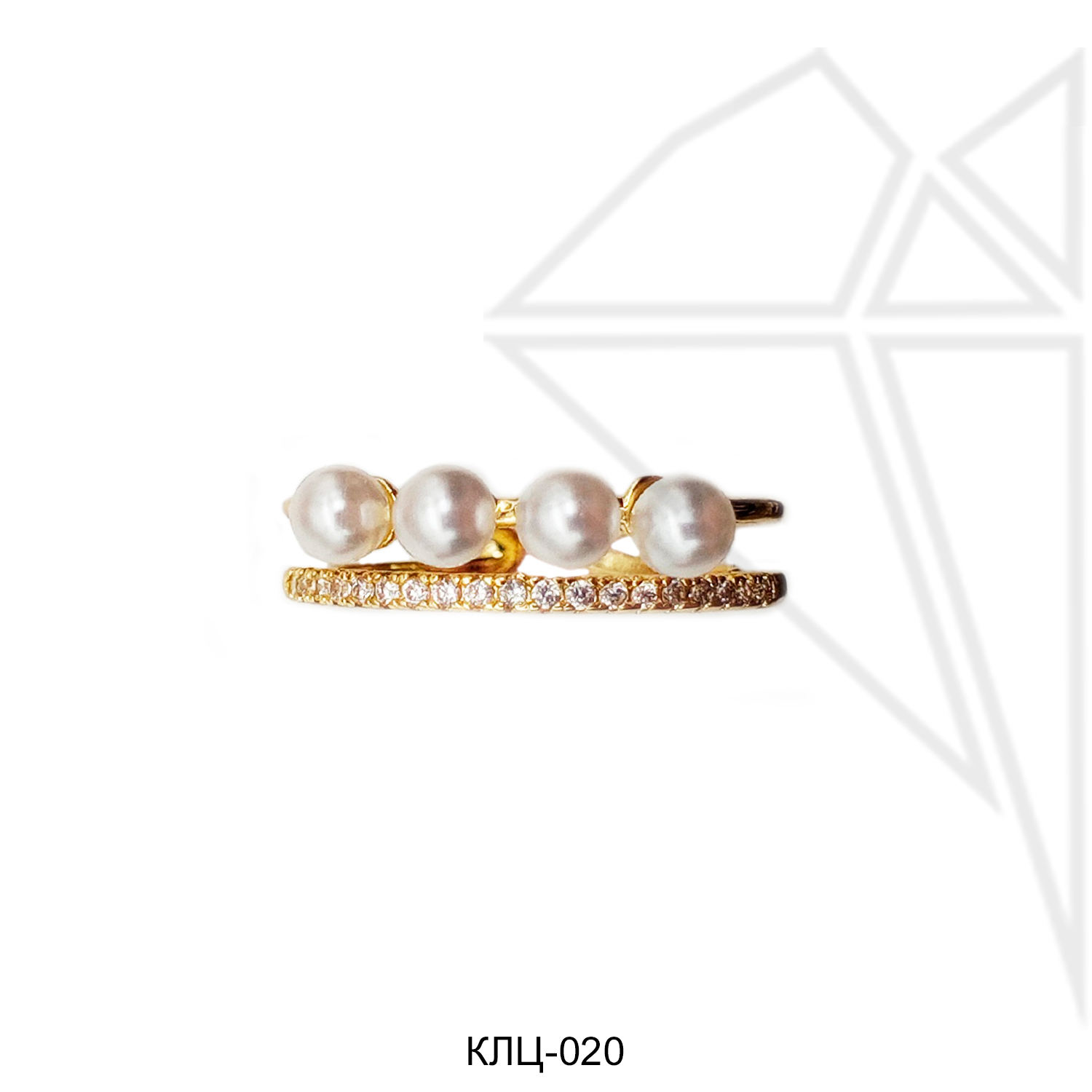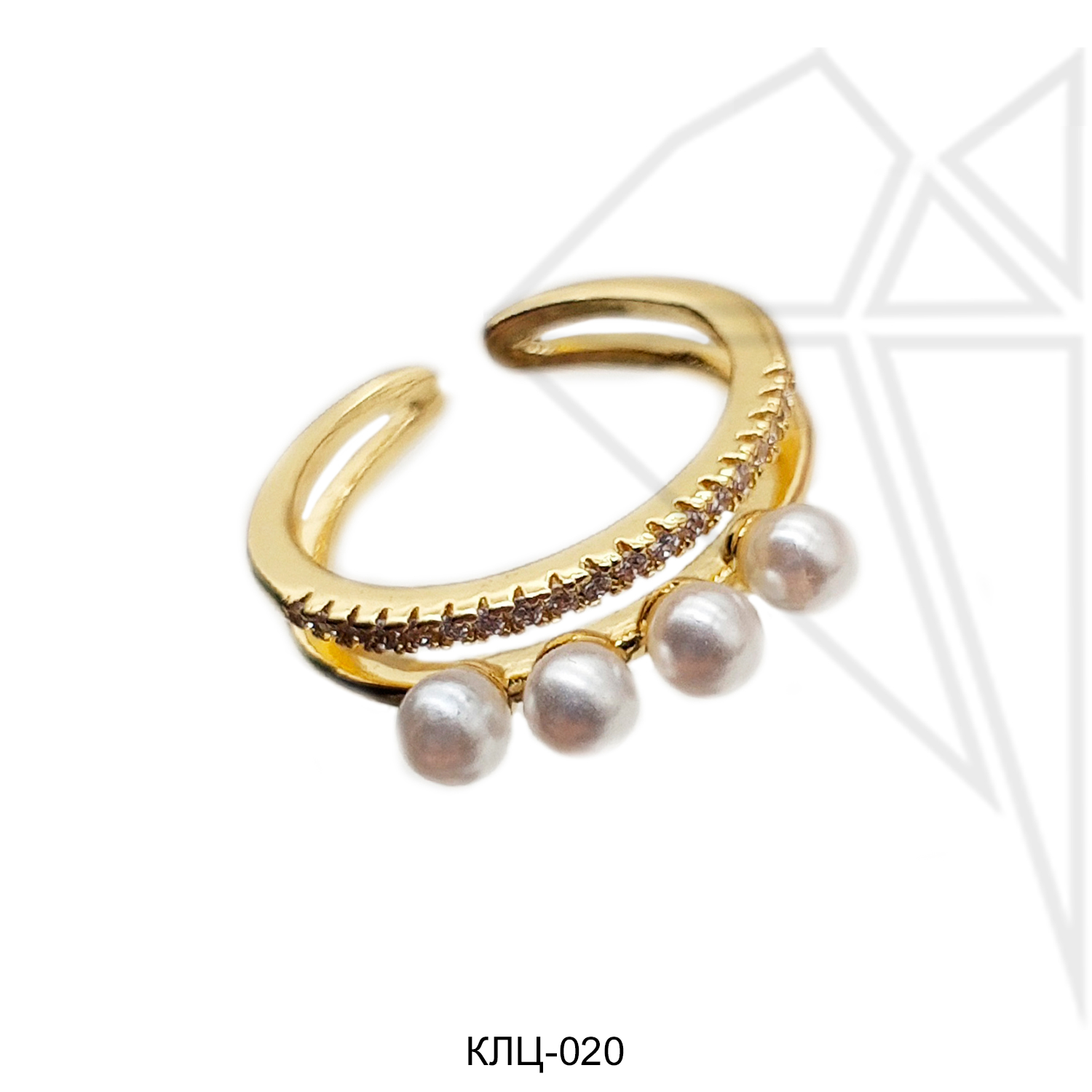 Кольцо инкрустировано фианитами и искусственным жемчугом