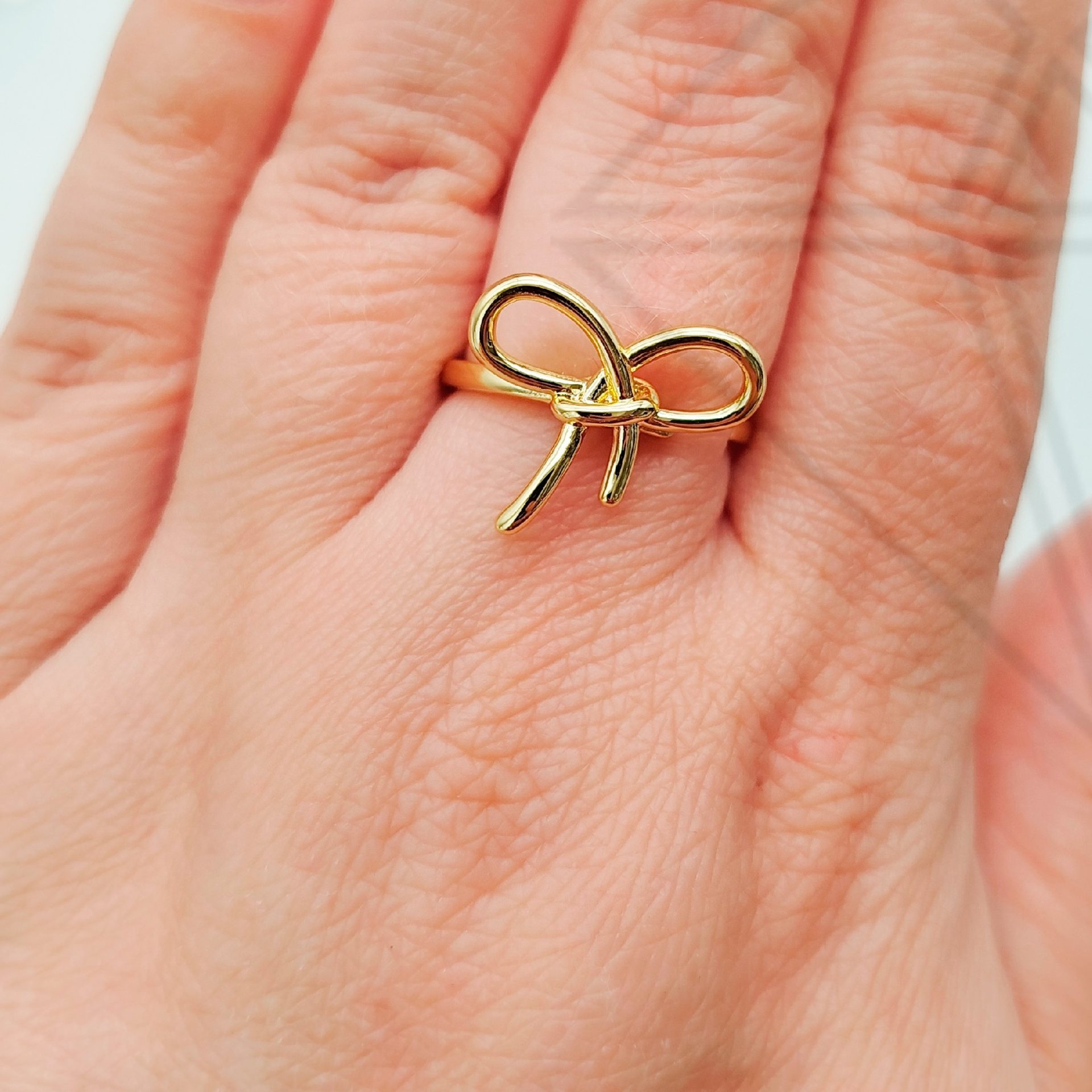 Кольцо безразмерное с бантиком люкс класса с позолоченным покрытием (по латуни).