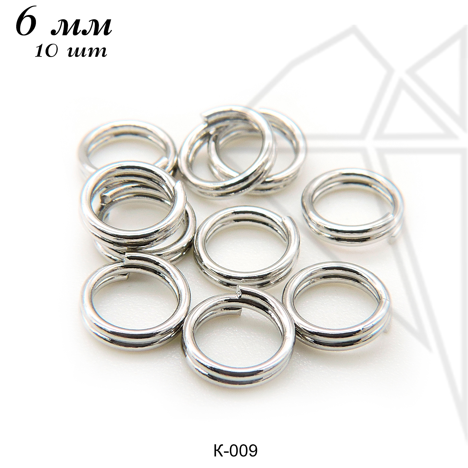 Колечки двойные (два оборота) класса люкс с родированным покрытием (по латуни) двойные 6 мм, 10 шт.