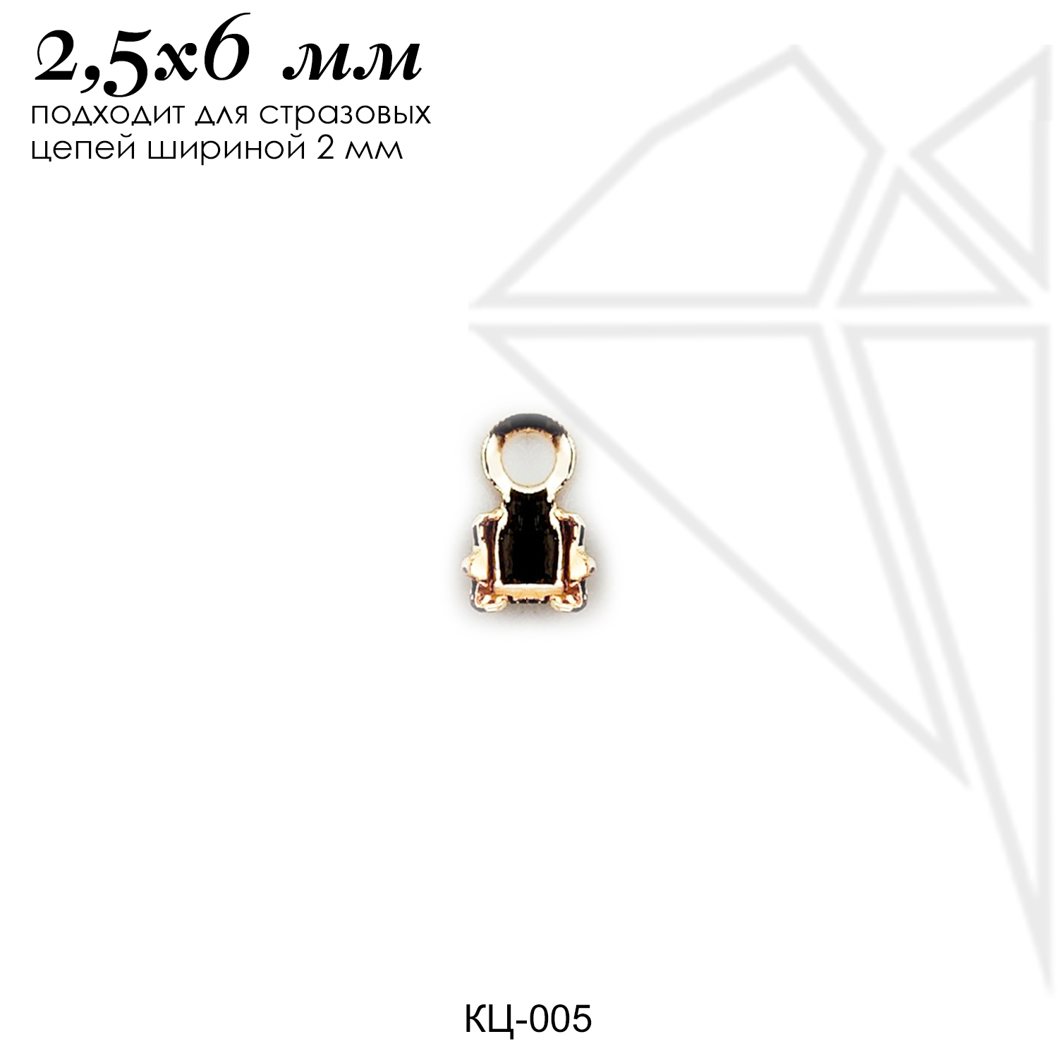Концевик подходит для стразовых цепей шириной 2 мм класса люкс с позолоченным покрытием (по латуни).