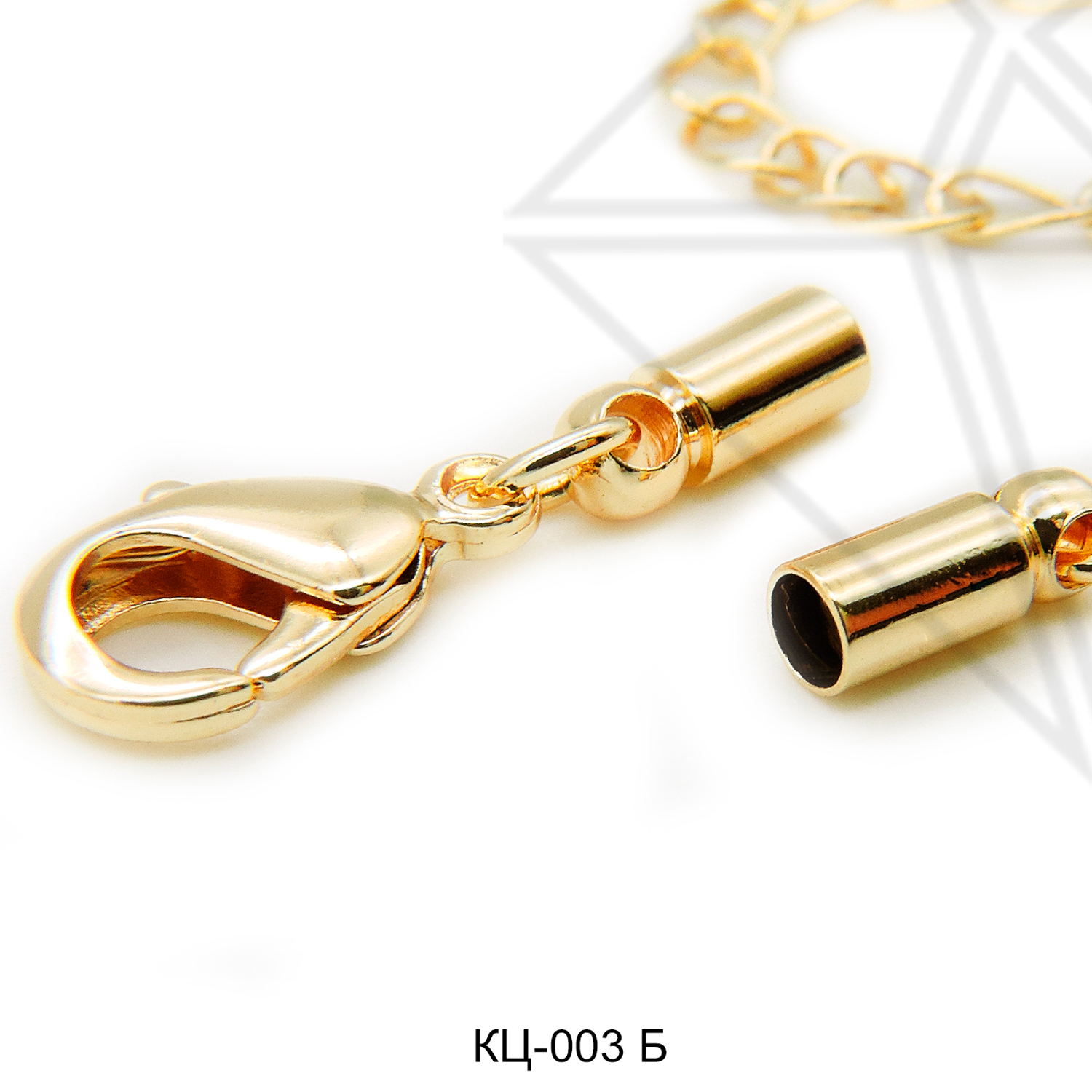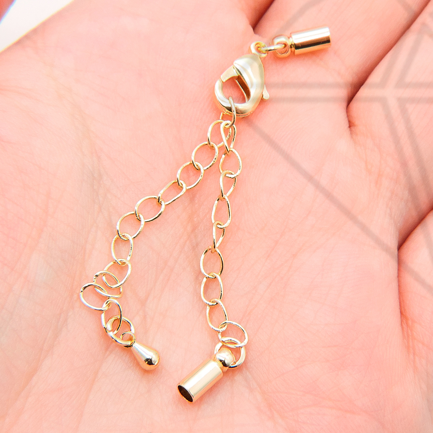 Концевик с карабином и удлинительной цепью для вклейки жгутов, шнуров класса люкс с позолоченным покрытием (по латуни).
