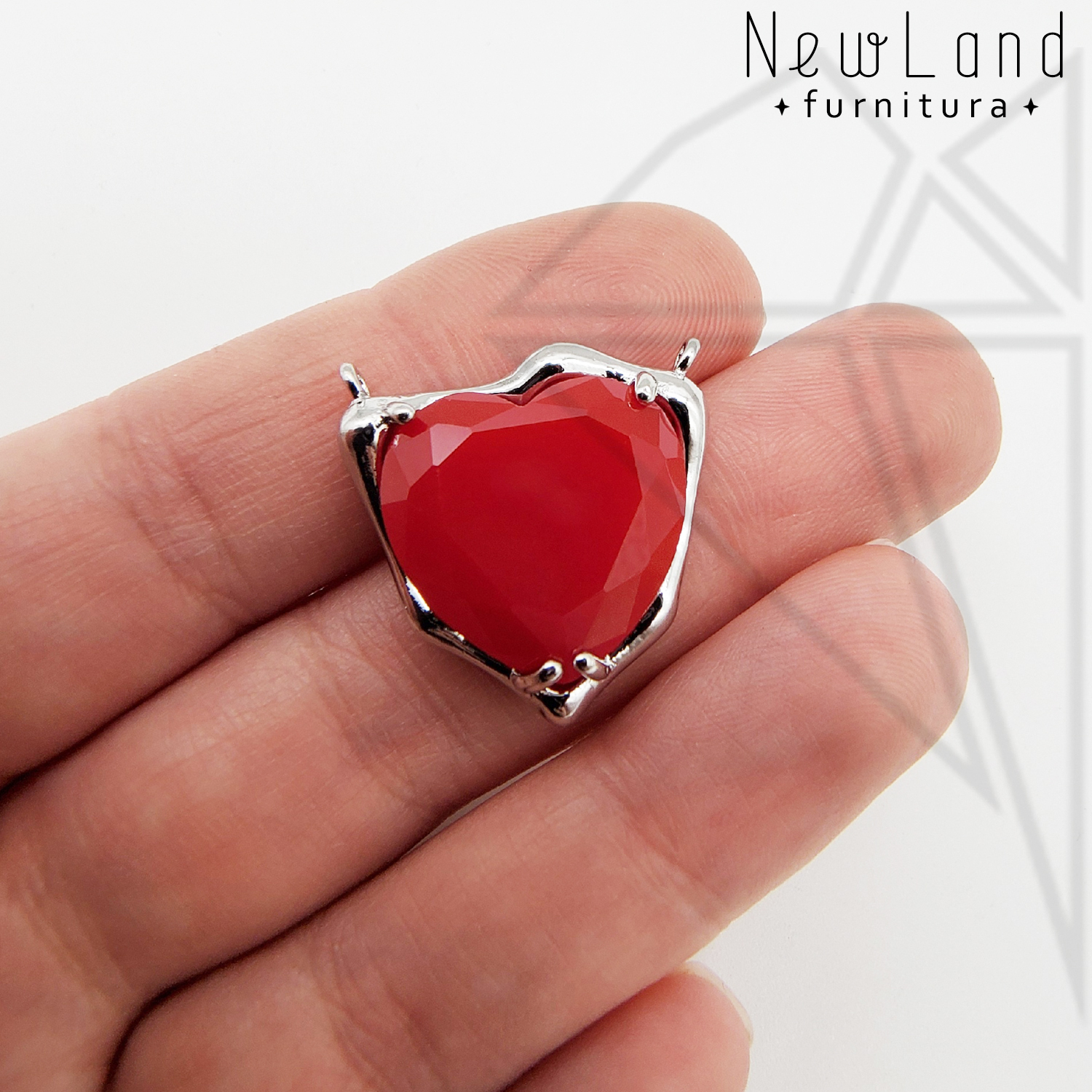 Коннектор инкрустирован крупным кристаллом в форме сердца красного цвета.