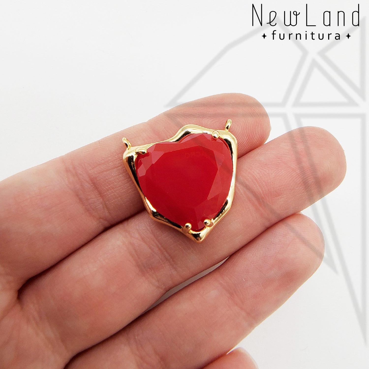 Коннектор инкрустирован крупным кристаллом в форме сердца красного цвета.