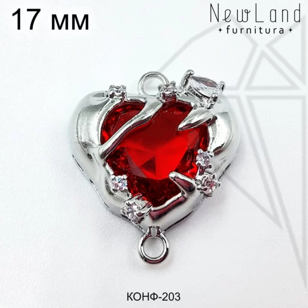 Коннектор в форме сердца с родированным покрытием (по латуни).