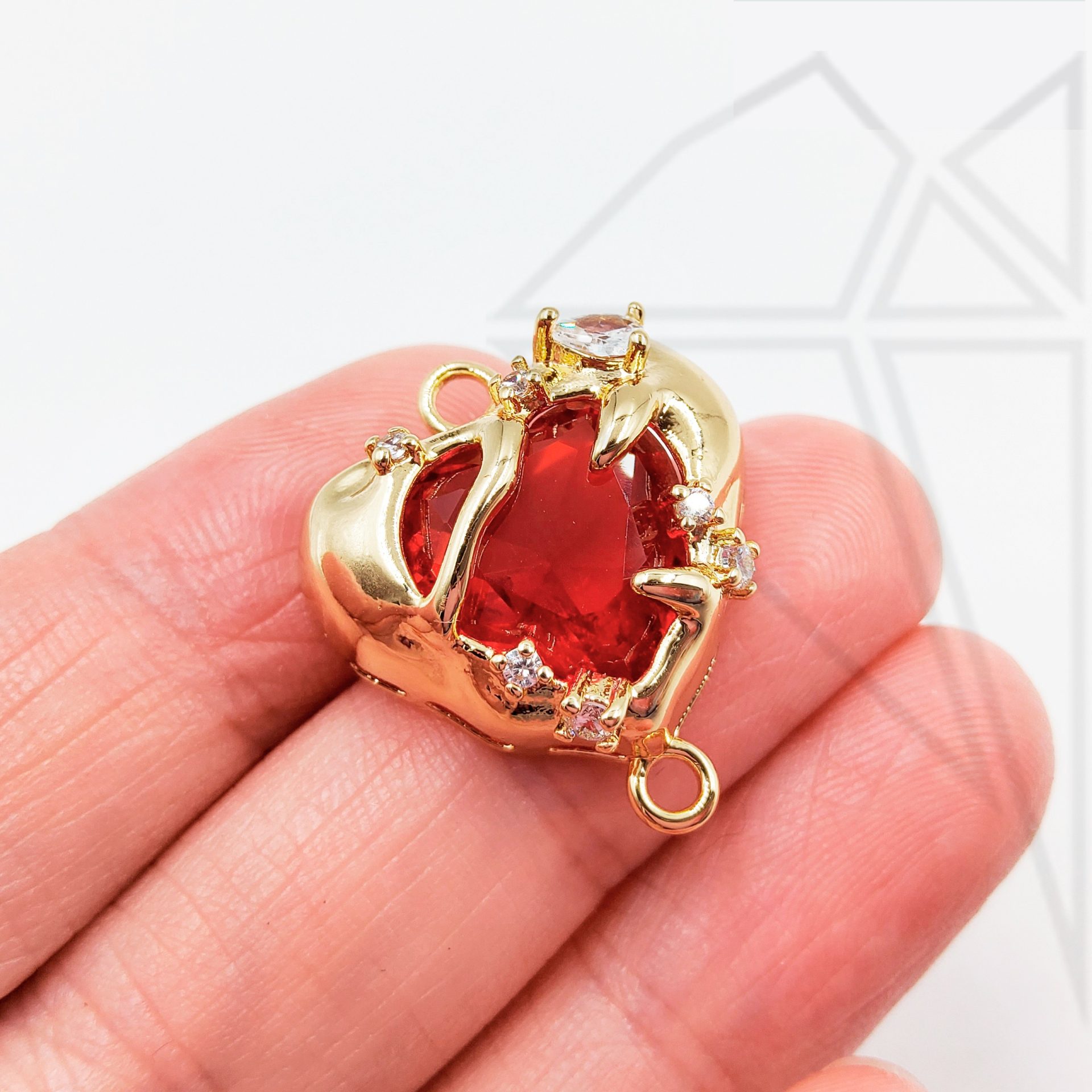 Коннектор инкрустирован большим красным фианитом и несколькими белыми фианитами поменьше.