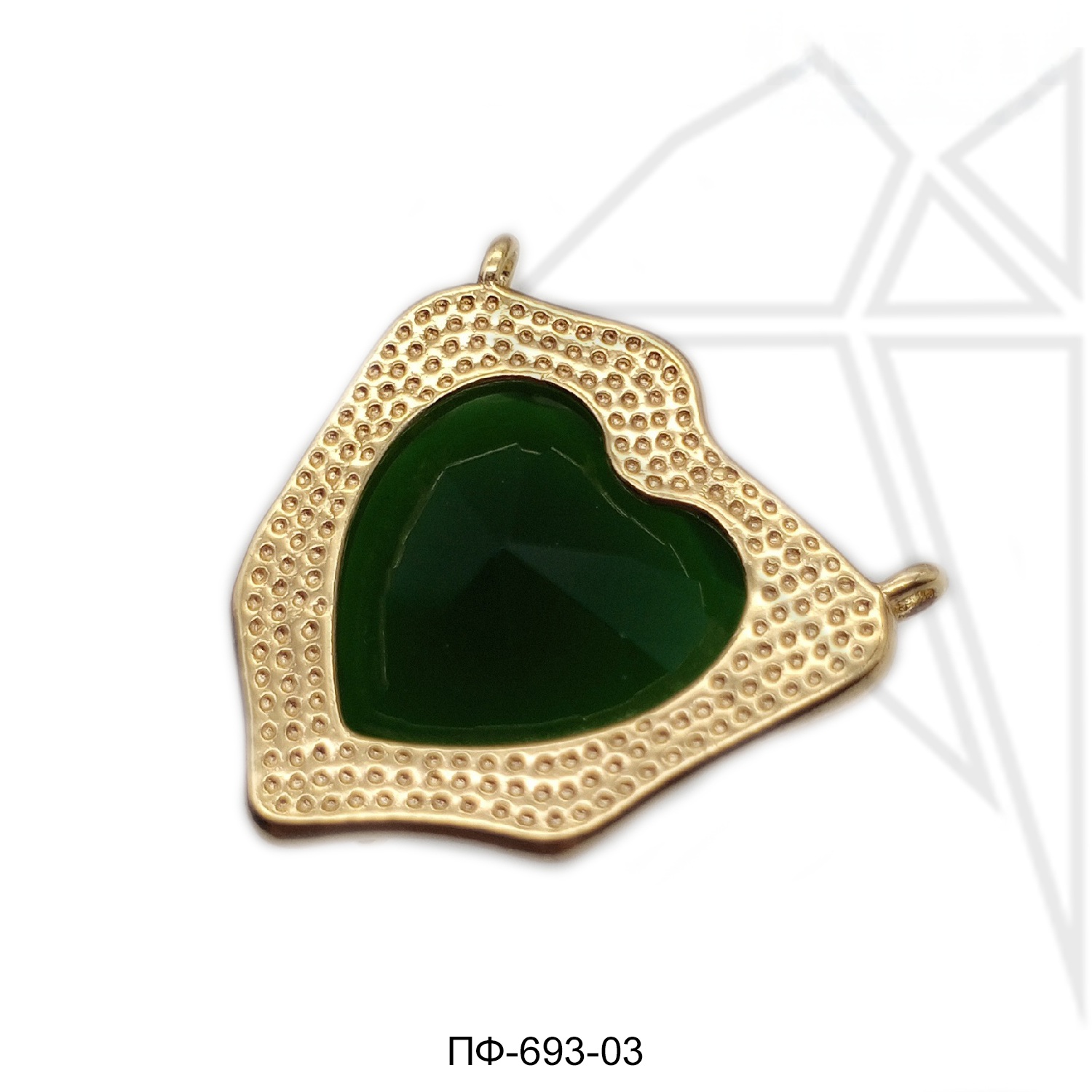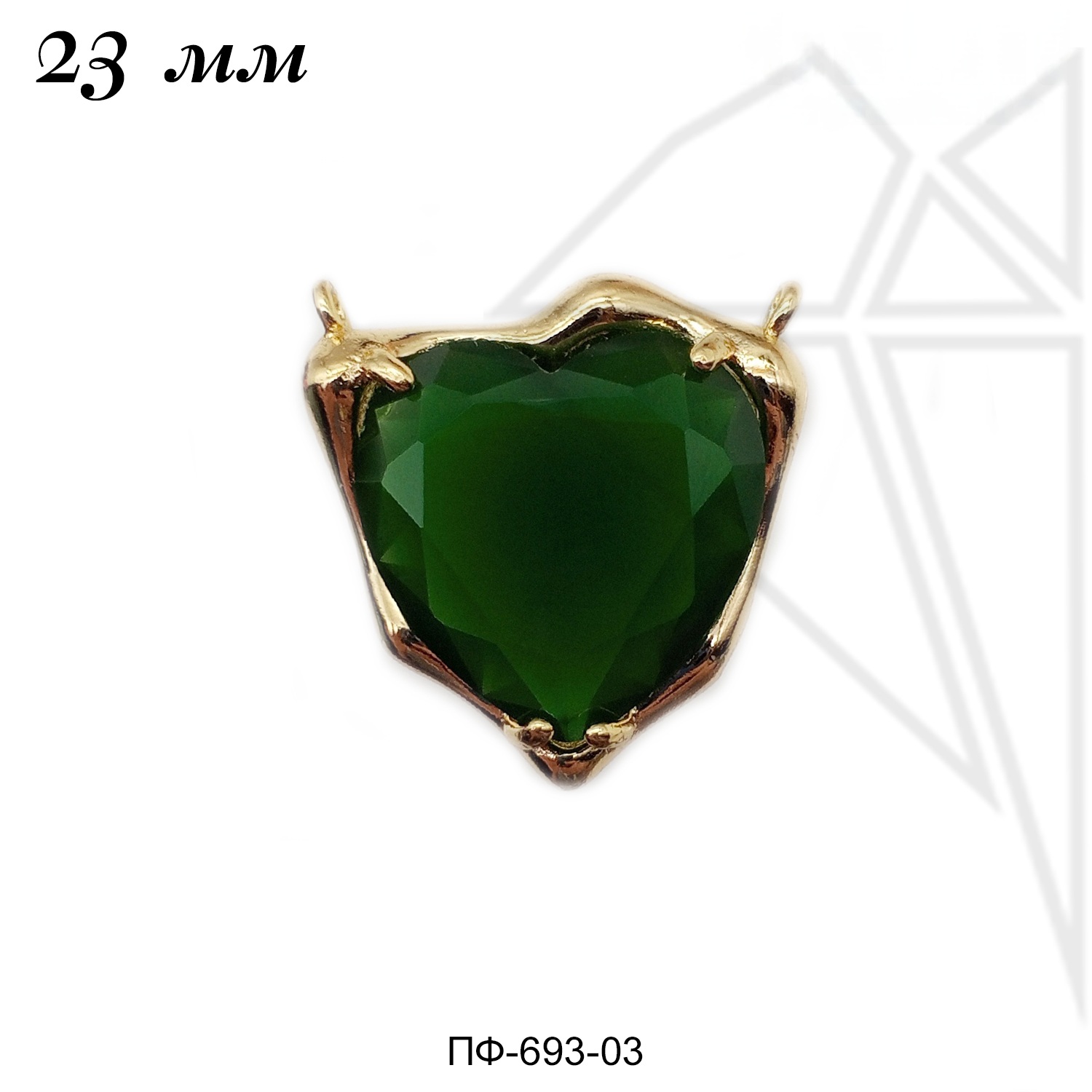 Коннектор инкрустирован крупным кристаллом в форме сердца зеленого цвета.