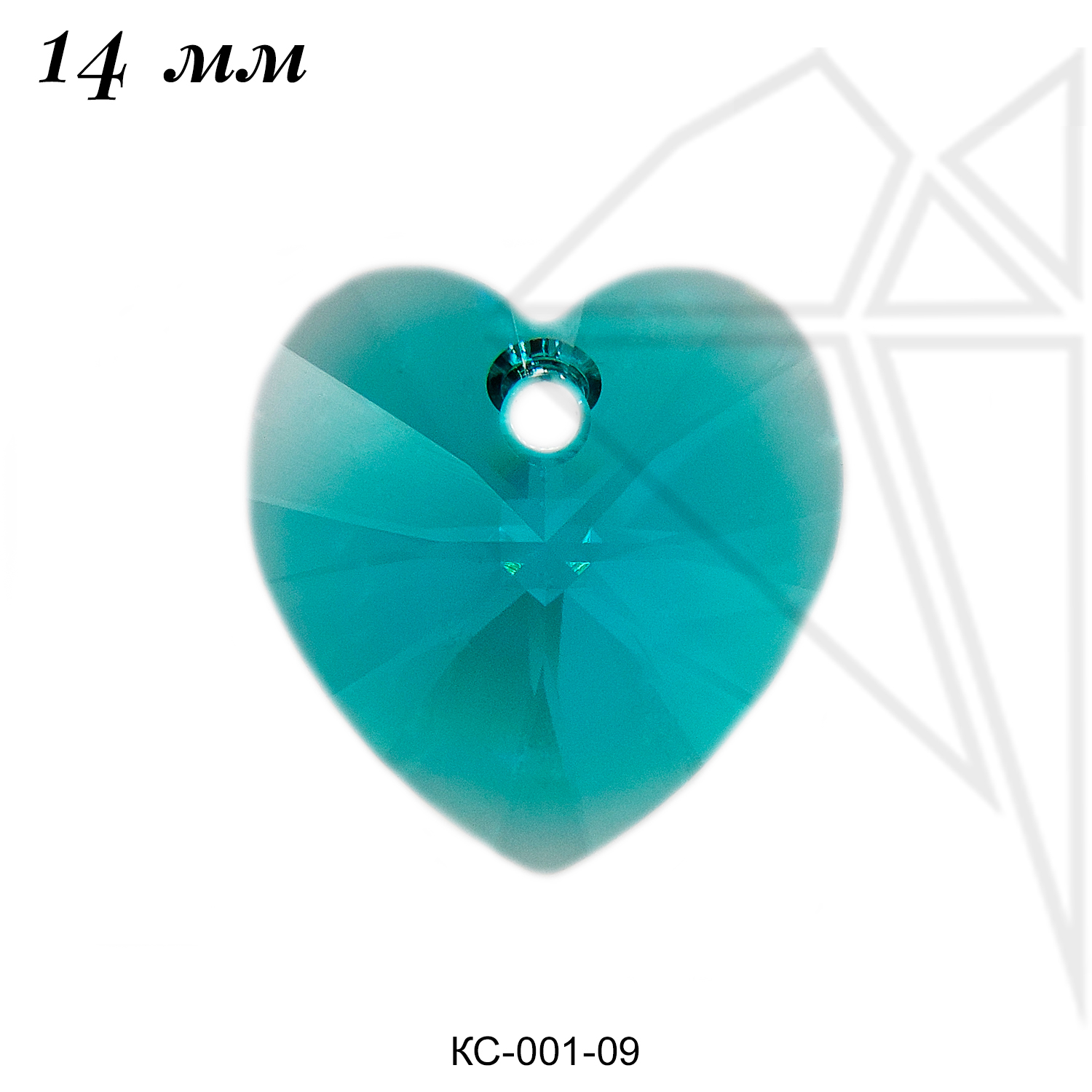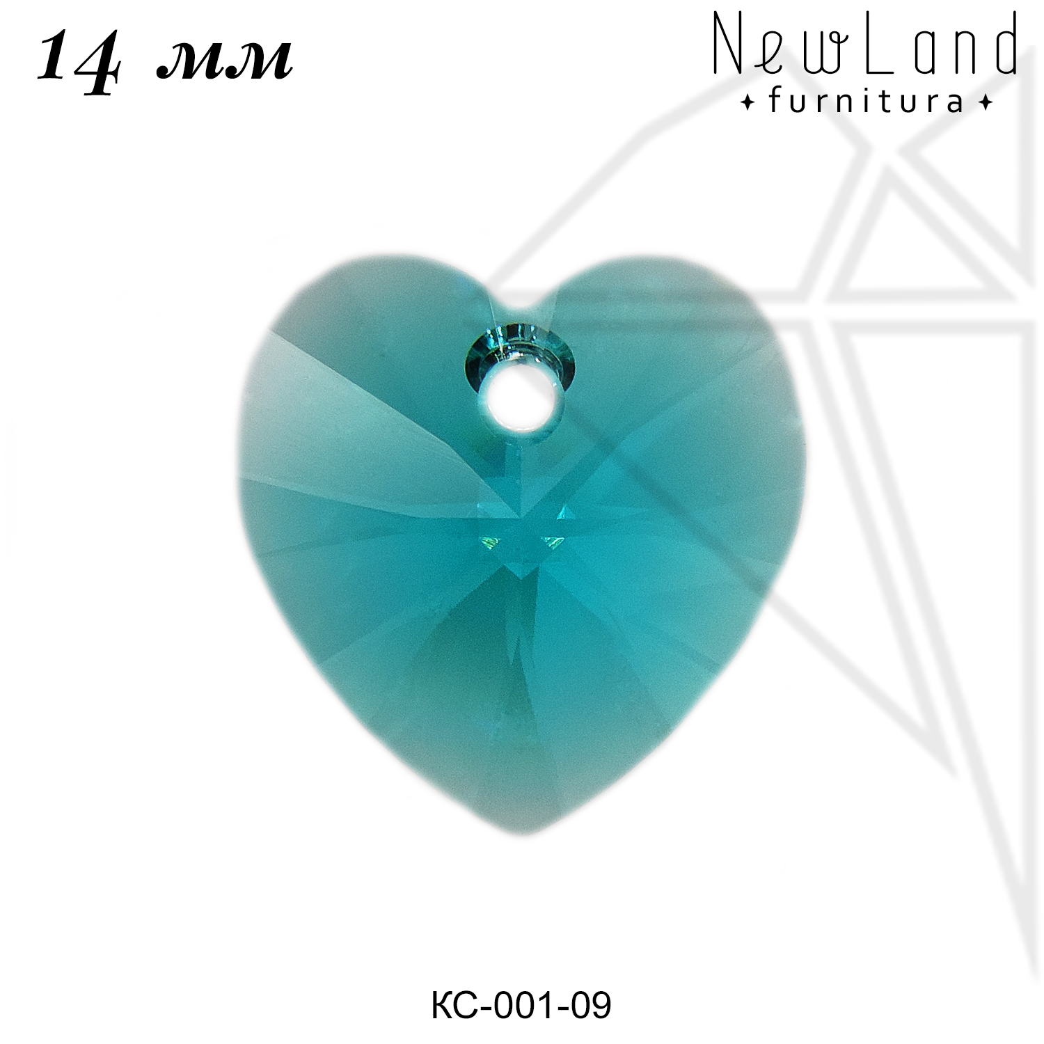 Подвески кристаллы Сваровски (аналог) в форме сердца голубого цвета — Blue Zircon.