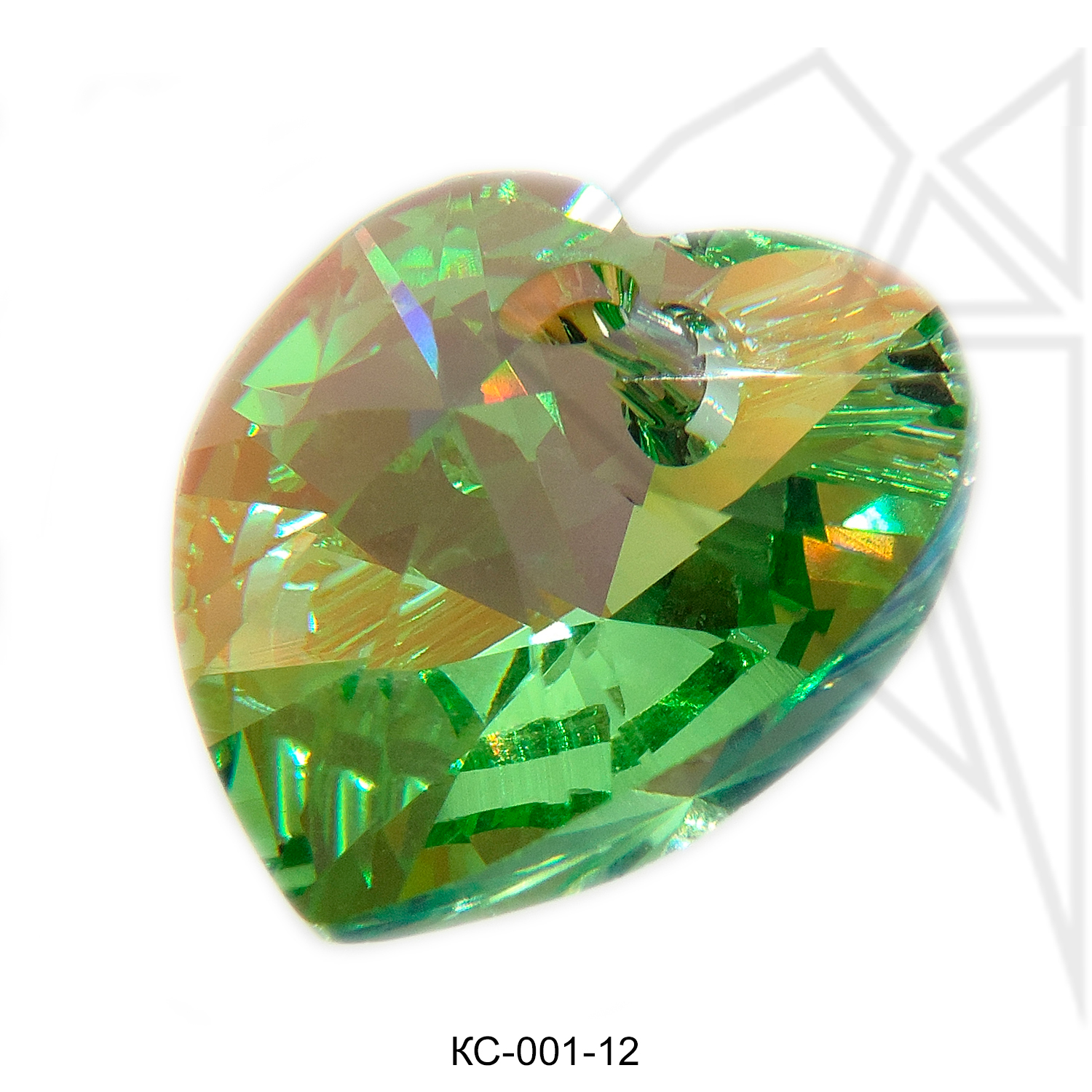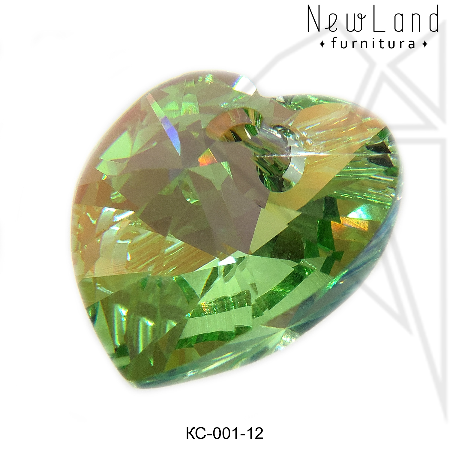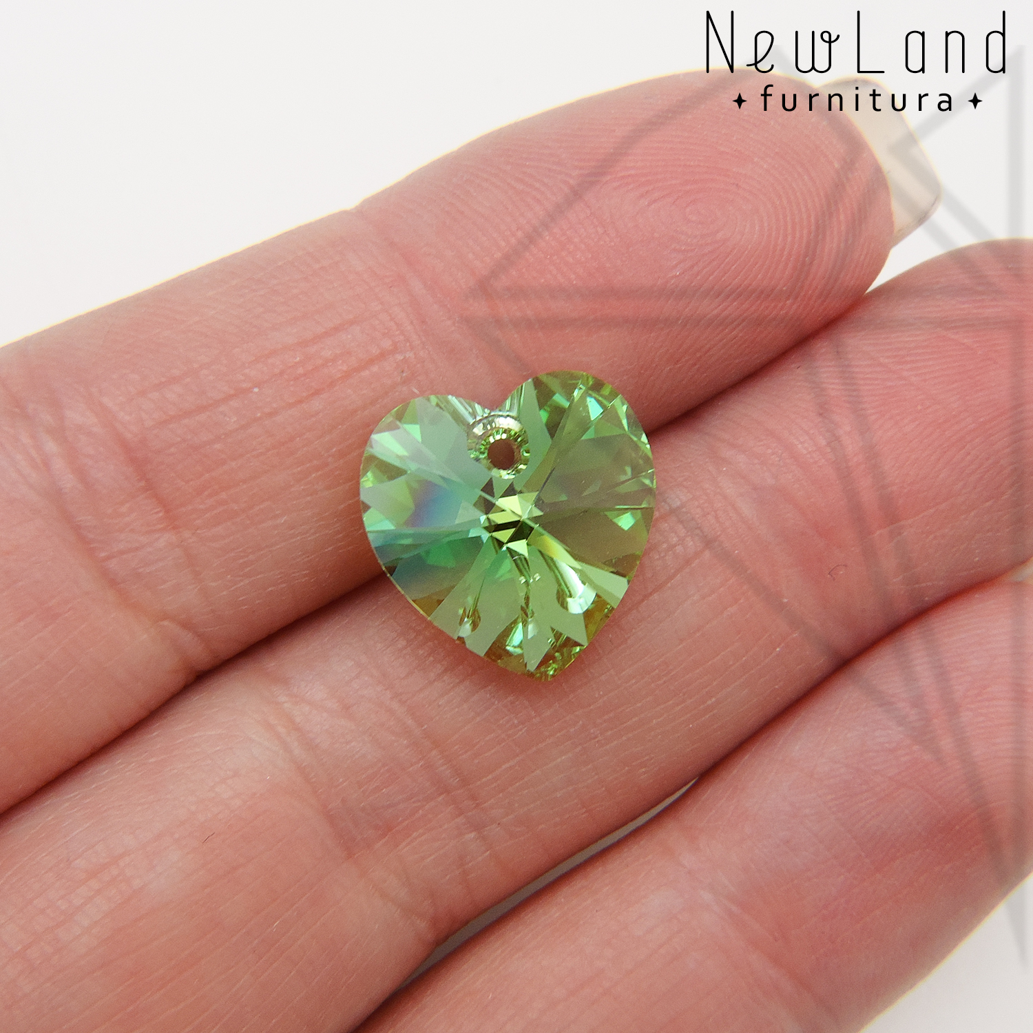 Подвески кристаллы Сваровски (аналог) в форме сердца зеленого цвета — Peridot.