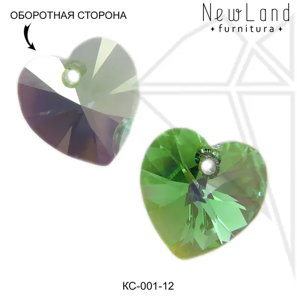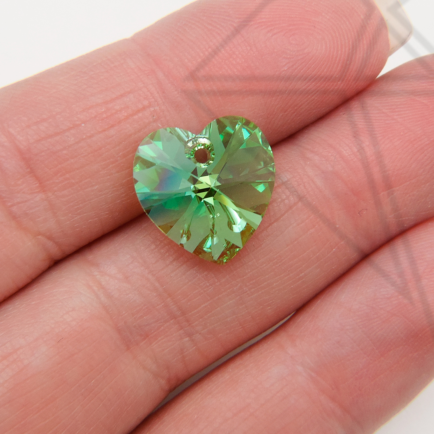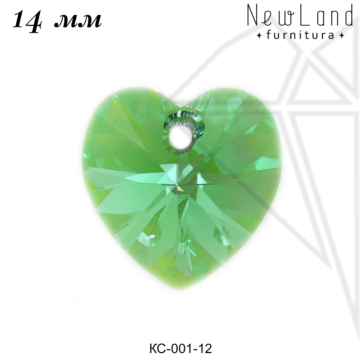 Подвески кристаллы Сваровски (аналог) в форме сердца зеленого цвета — Peridot.