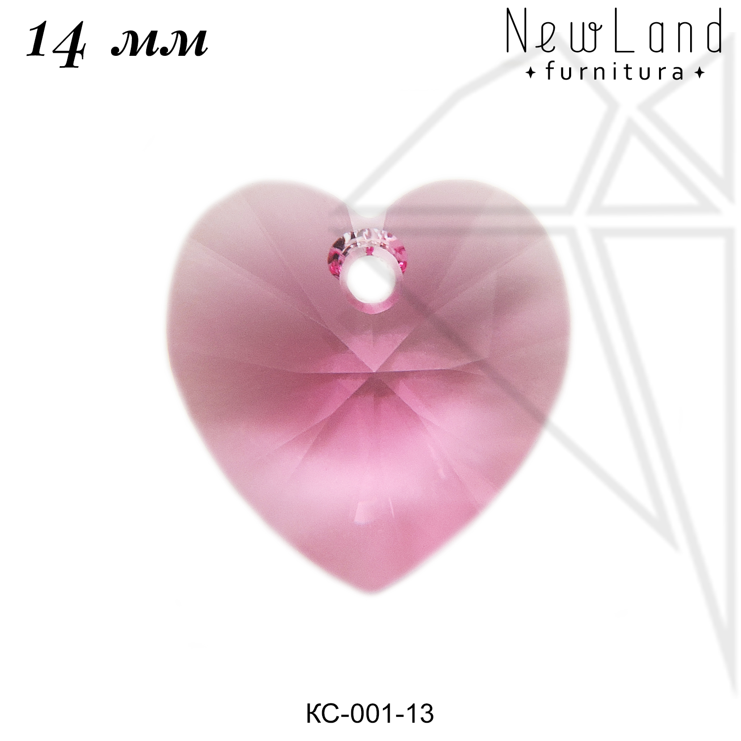 Подвески кристаллы Сваровски (аналог) в форме сердца розового цвета — Rose.