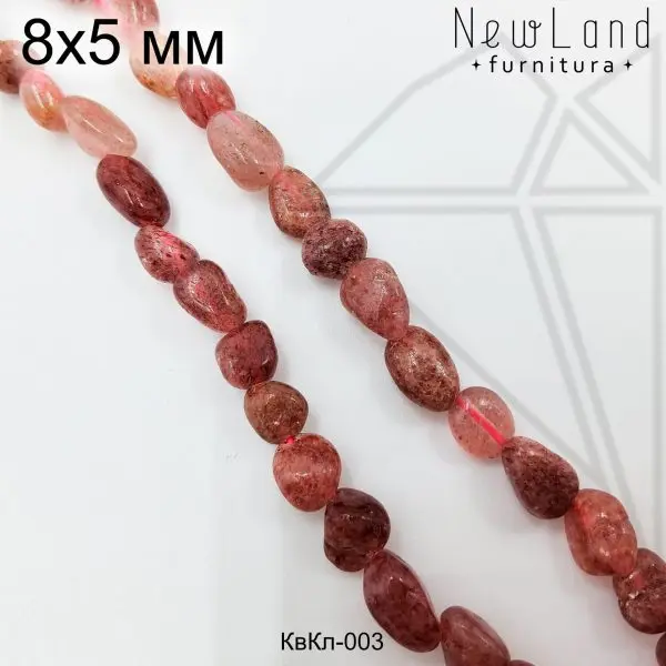 Кварц клубничный галтовка глянцевый гладкий 8х5 мм.