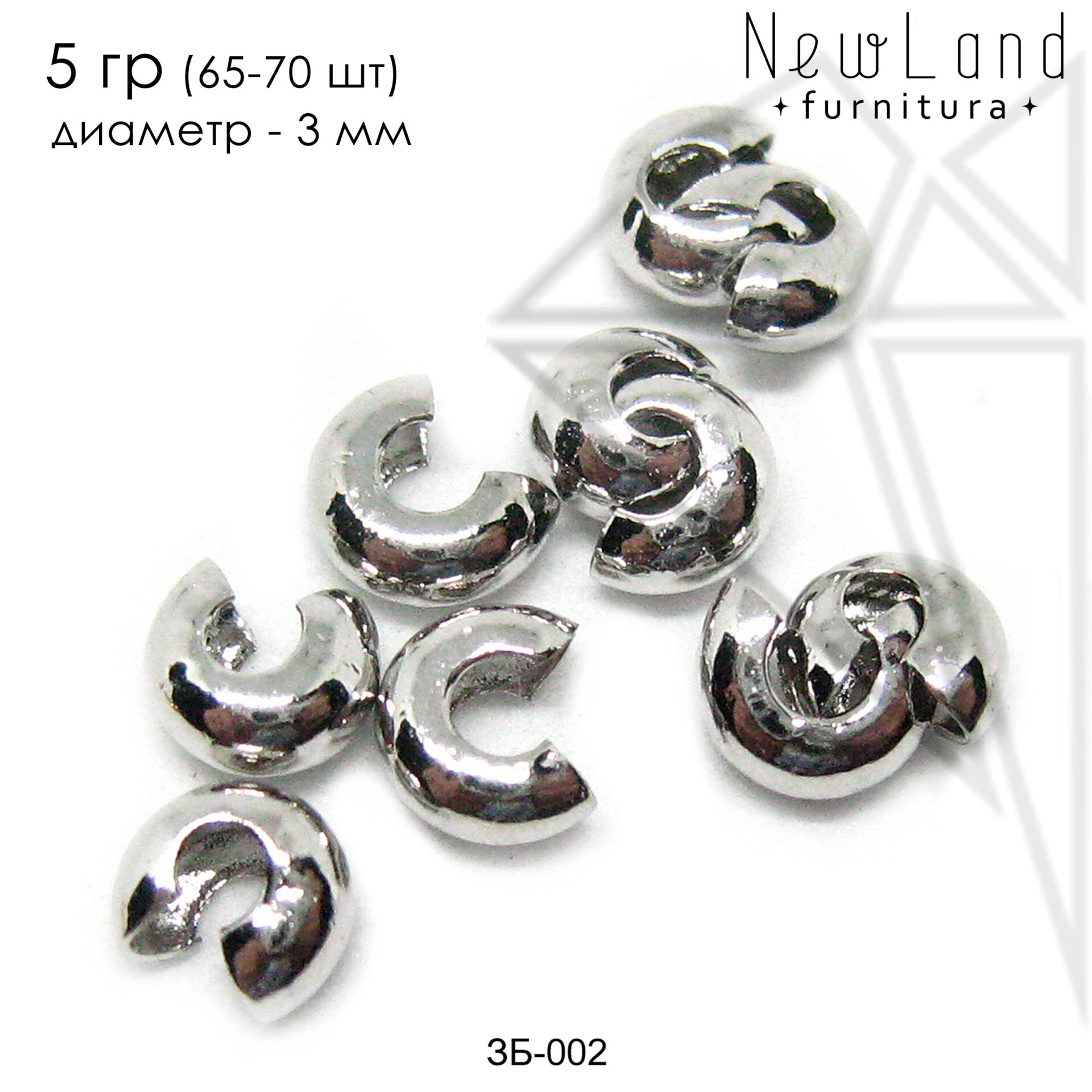 Обжимные бусины класса люкс с родированным покрытием (по латуни).
