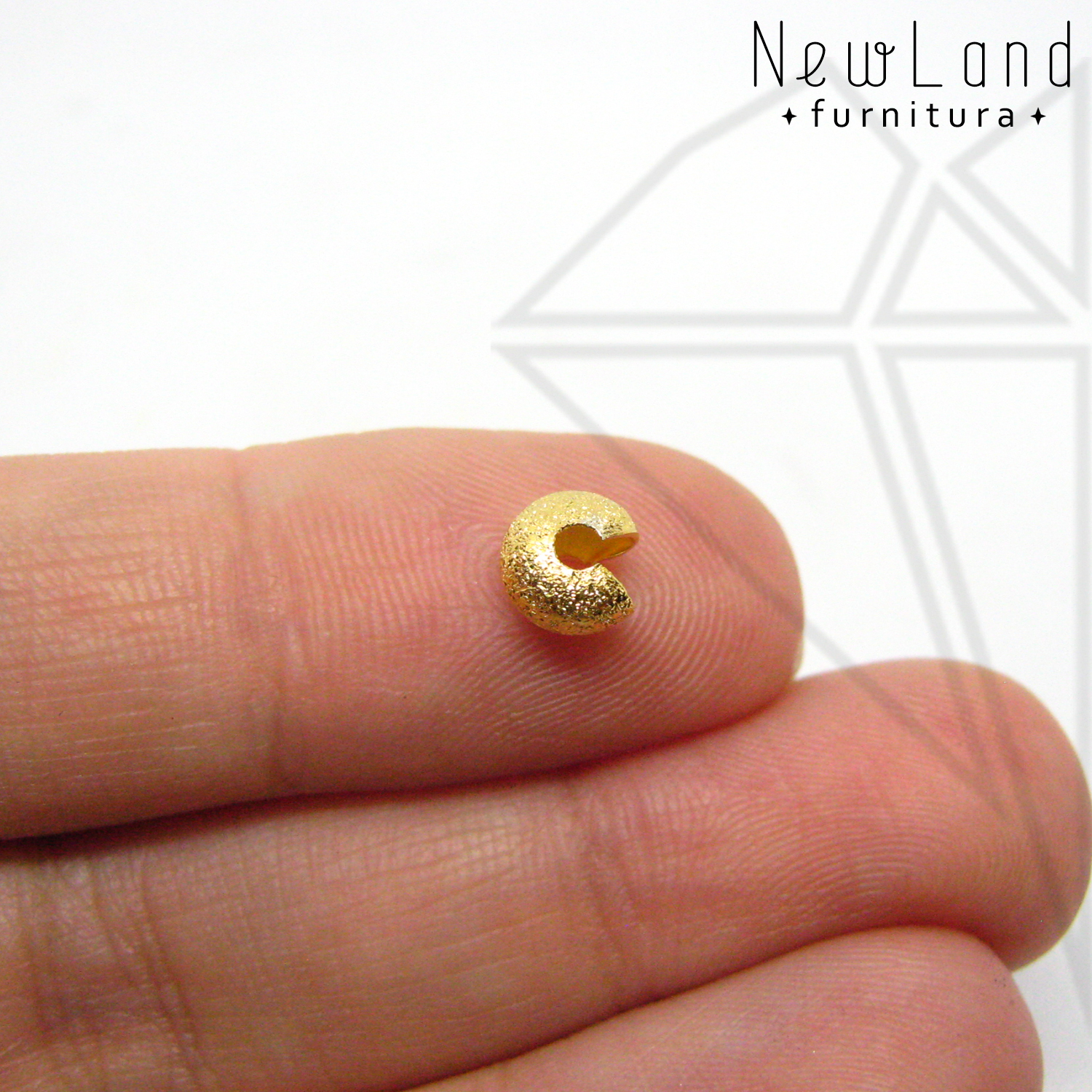 Обжимные бусины с фактурной поверхностью класса люкс с позолоченным покрытием (по латуни).