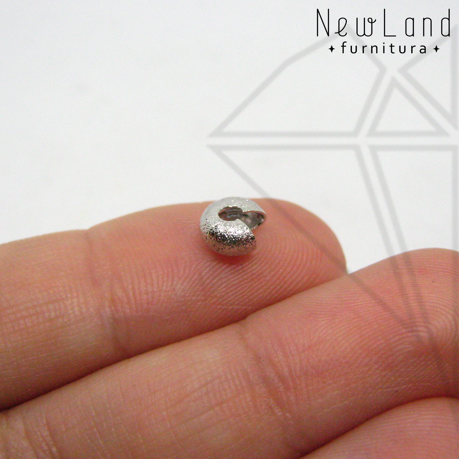 Обжимные бусины с фактурной поверхностью класса люкс с родированным покрытием (по латуни).